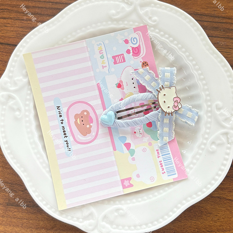 한국의 새로운 블루 핑크 활 새끼 고양이 사랑 헤어 클립 bb 클립 달콤한 멋진 소녀 앞머리 클립 올 매치 헤어 액세서리스토어 가기