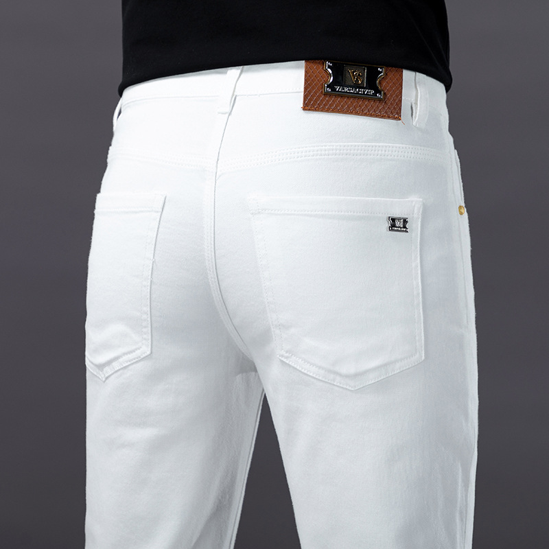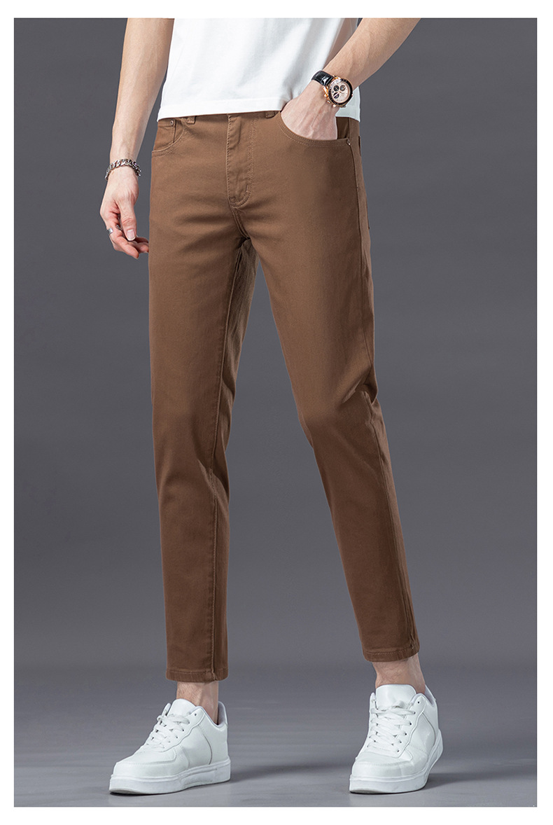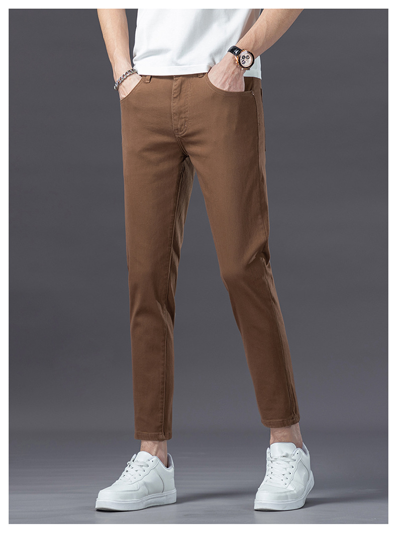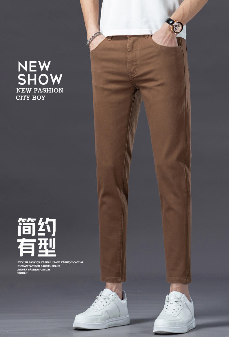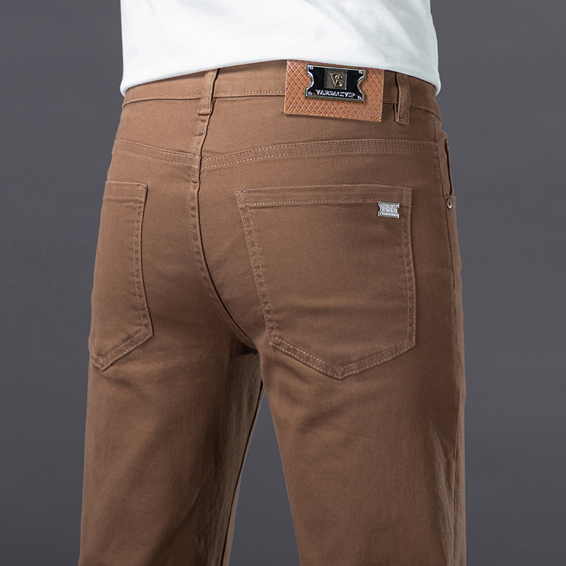 유럽의 하이 엔드 트렌디 브랜드 딥 카레 컬러 청바지 남성 봄과 여름 새로운 슬림 핏 다리 스트레치 유행 캐주얼 남성 바지스토어 가기