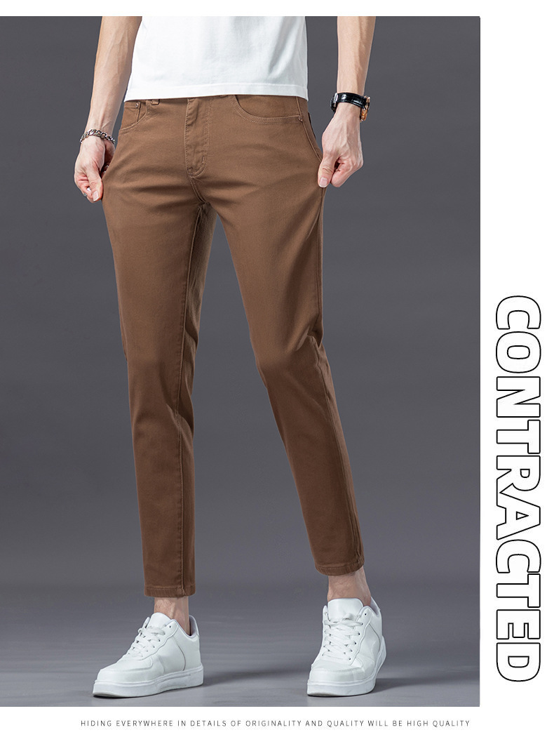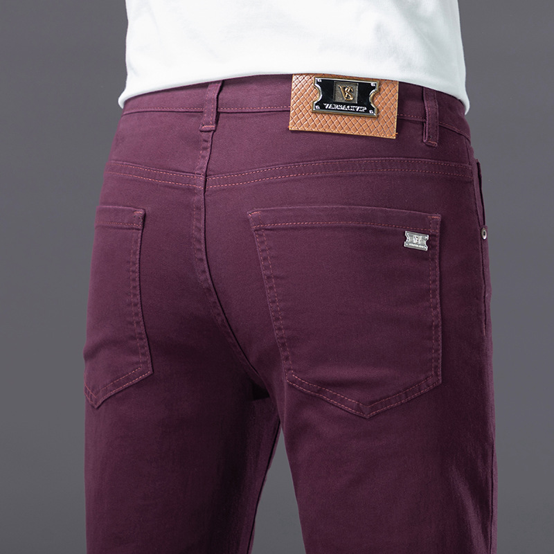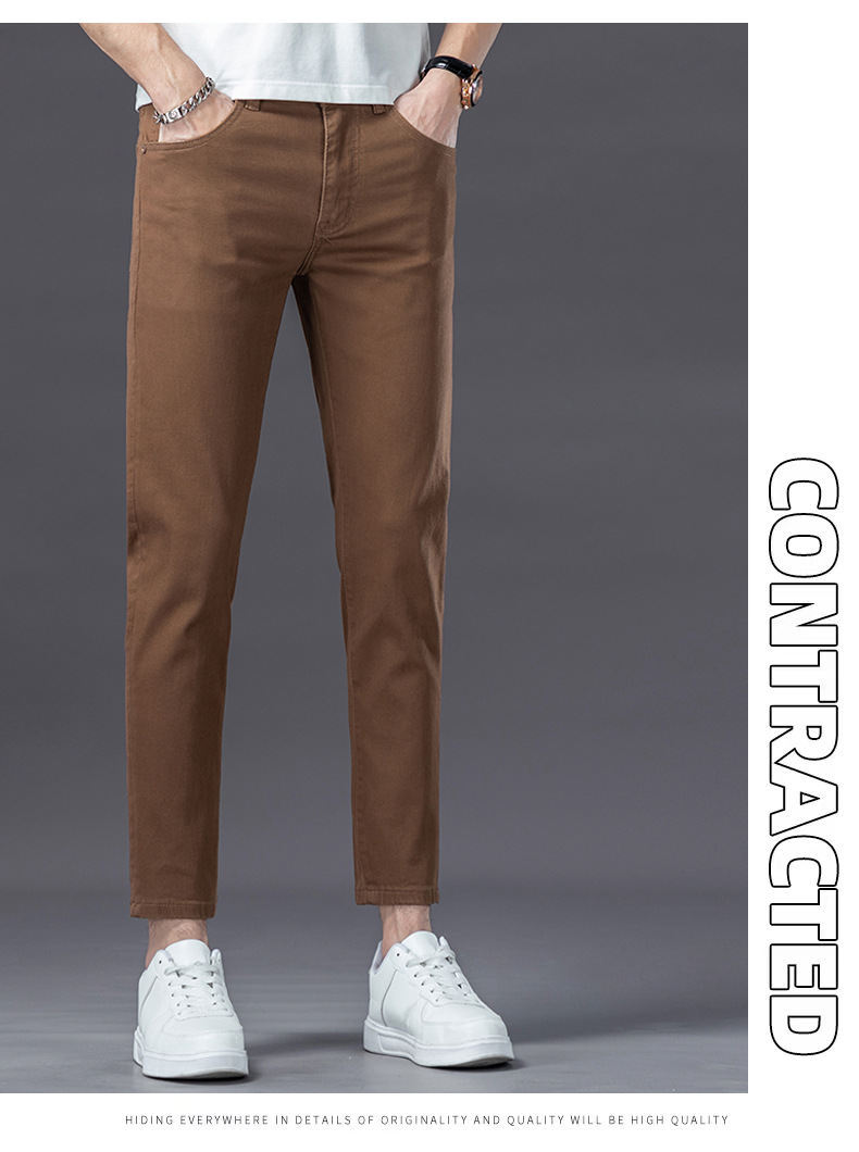유럽의 하이 엔드 트렌디 브랜드 딥 카레 컬러 청바지 남성 봄과 여름 새로운 슬림 핏 다리 스트레치 유행 캐주얼 남성 바지