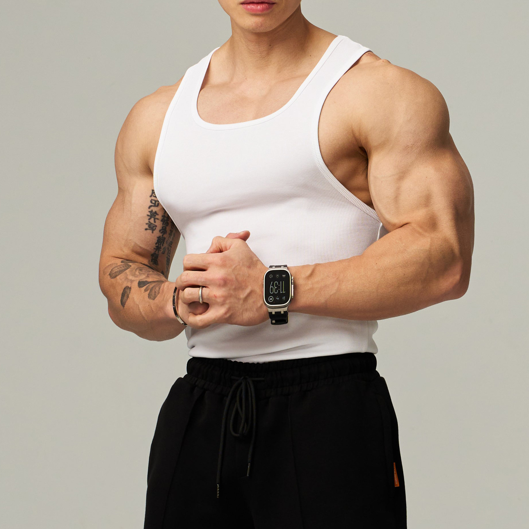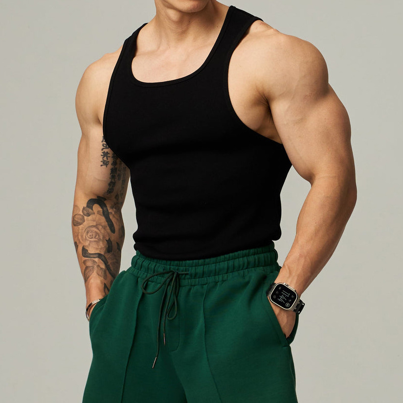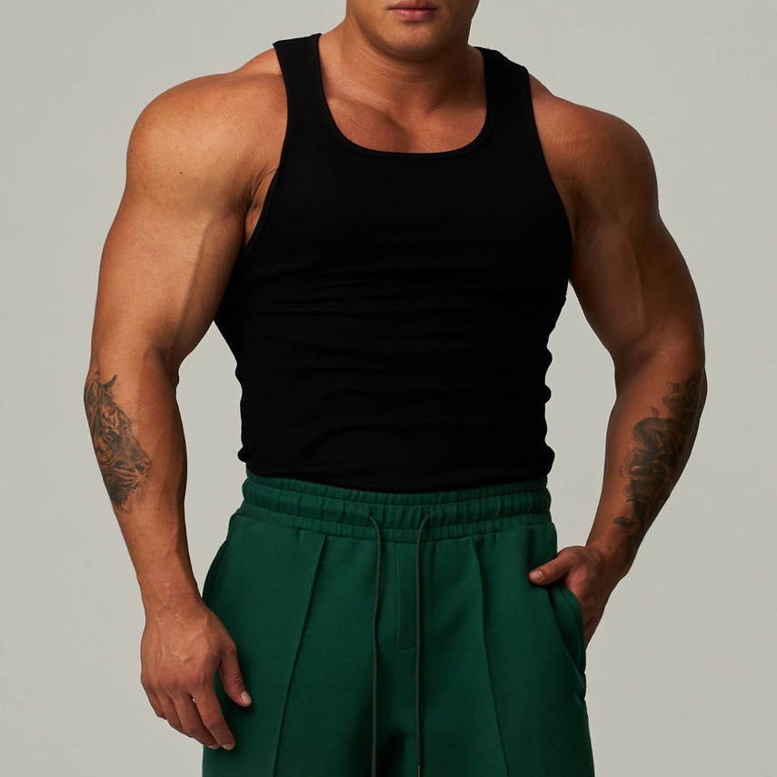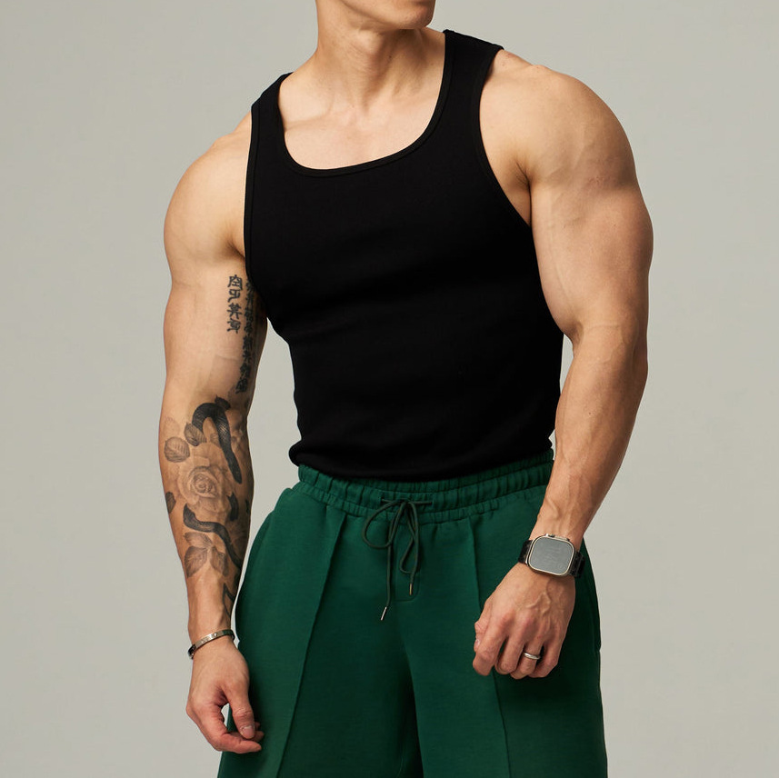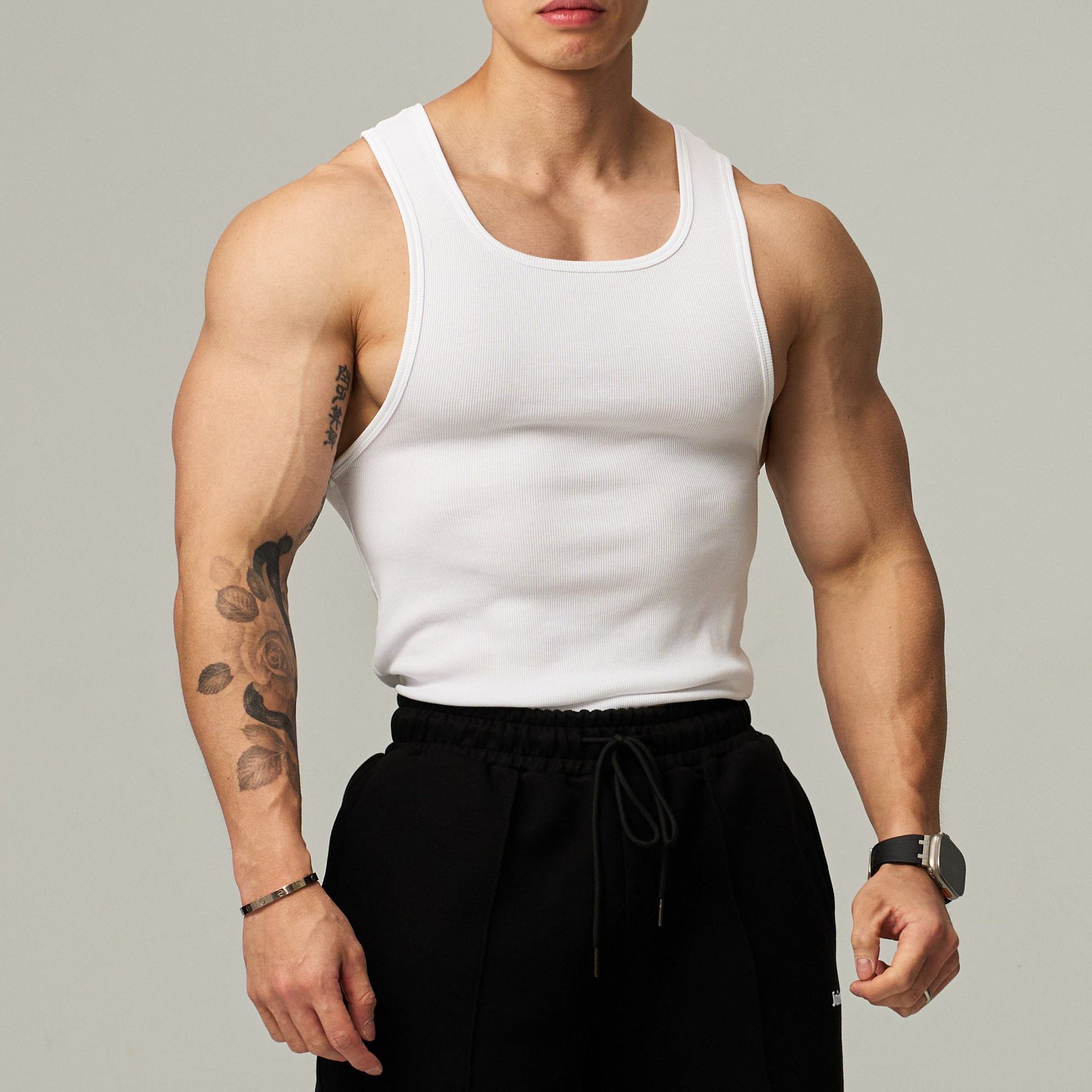 Threaded Stripe American Style 높은 타이트 스트레치 스포츠 조끼 남자 여름 런닝 스퀘어 넥 빠른 건조 피트니스 민소매 탑