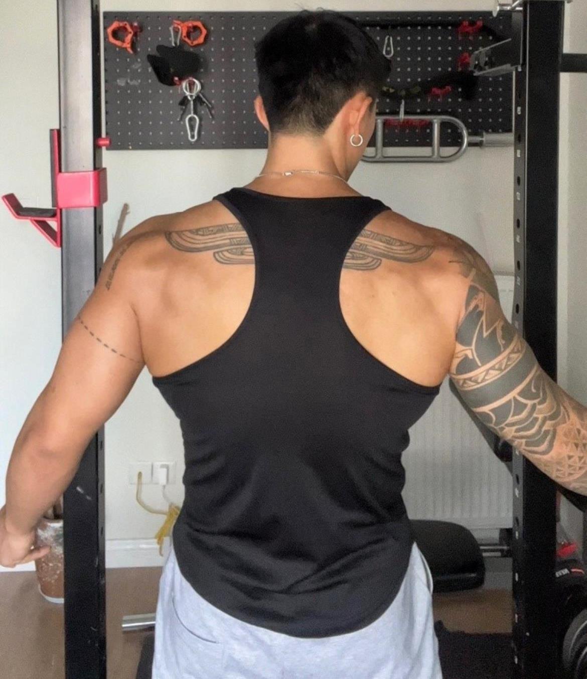 Threaded Stripe American Style 높은 타이트 스트레치 스포츠 조끼 남자 여름 런닝 스퀘어 넥 빠른 건조 피트니스 민소매 탑스토어 가기