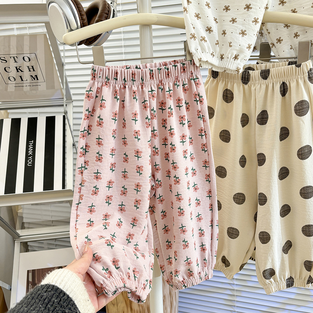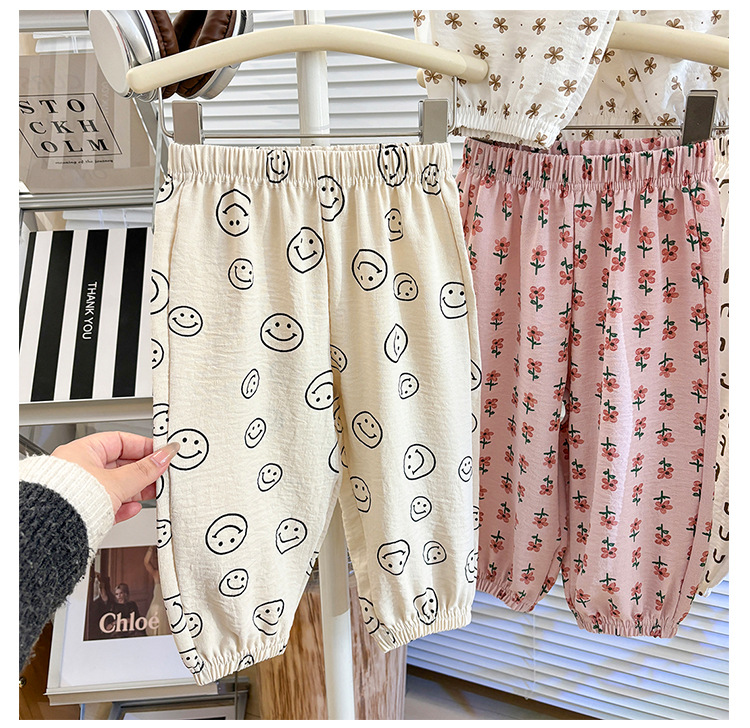 어린이 모기 방지 바지 여름 얇은 소녀 얼음 이슬 리넨 캐주얼 바지 남자와 아기의 등불 바지 어린이 여름 바지