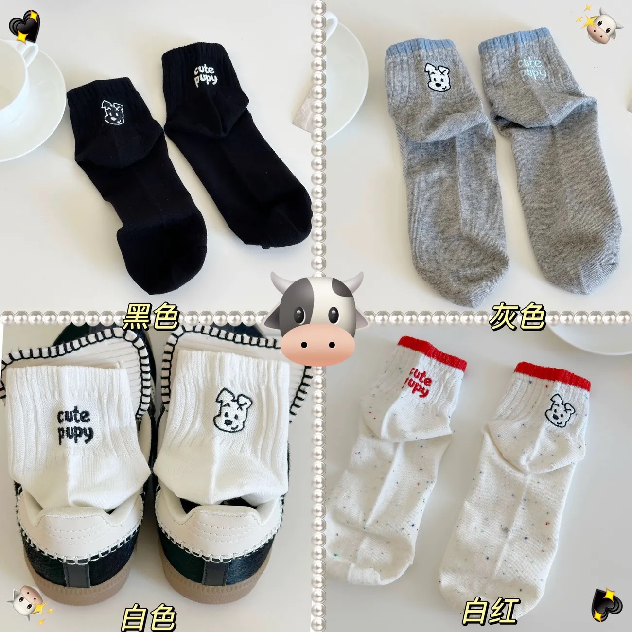 AB 귀여운 아이디어 강아지 양말 여성 짧은 양말 봄과 여름 얇은 일본 만화 낮은 짧은 양말 학생 단순