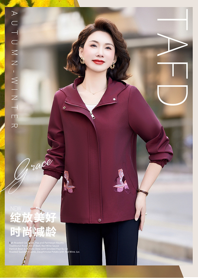 엄마 봄 후드 트렌디 코트 코트 새로운 카디건 중년 및 노인 여성 플러스 사이즈 캐주얼 재킷 탑 옷스토어 가기