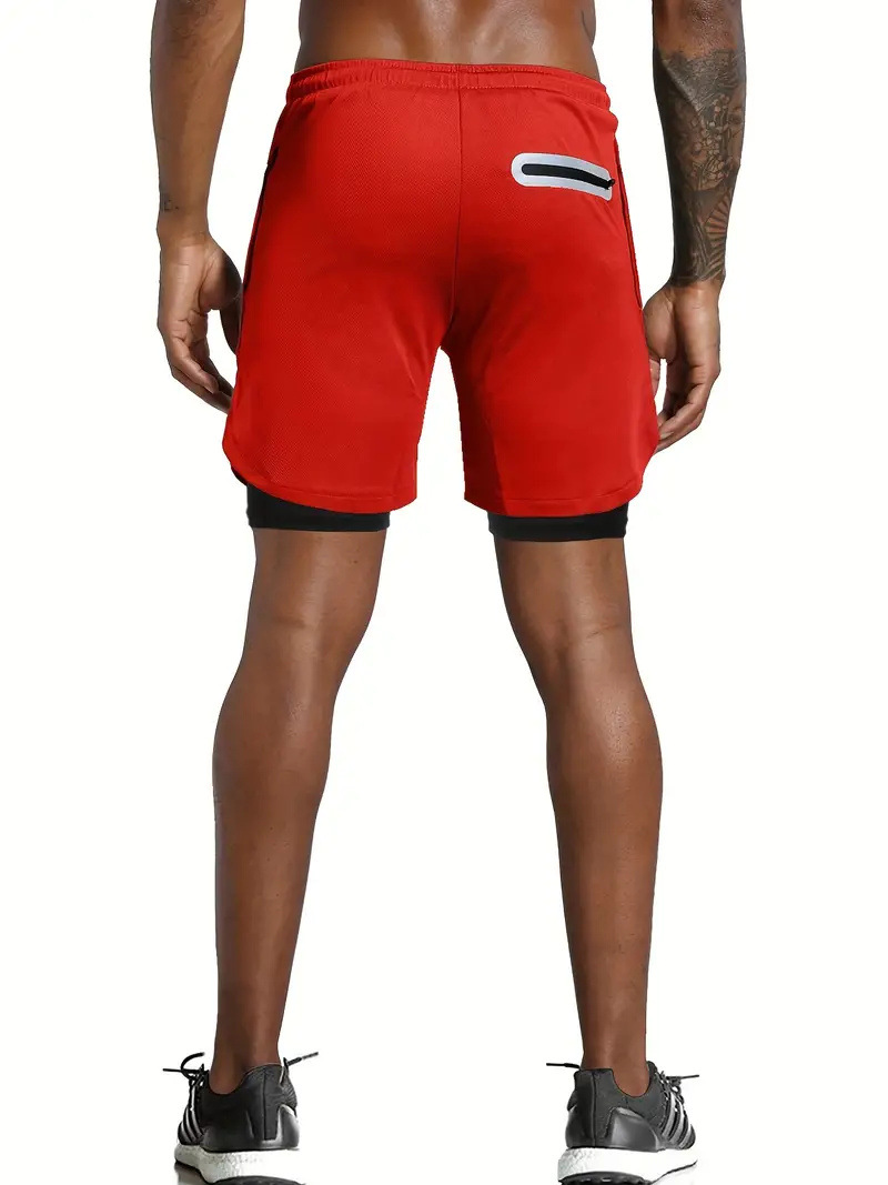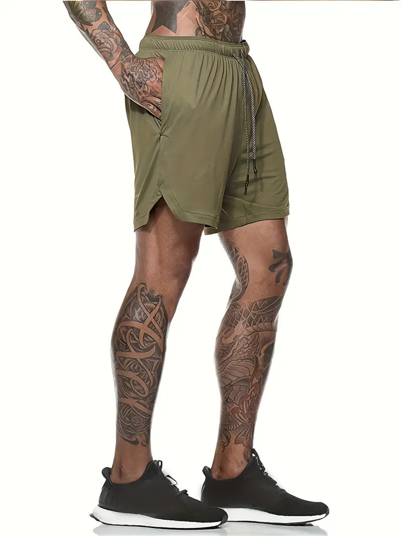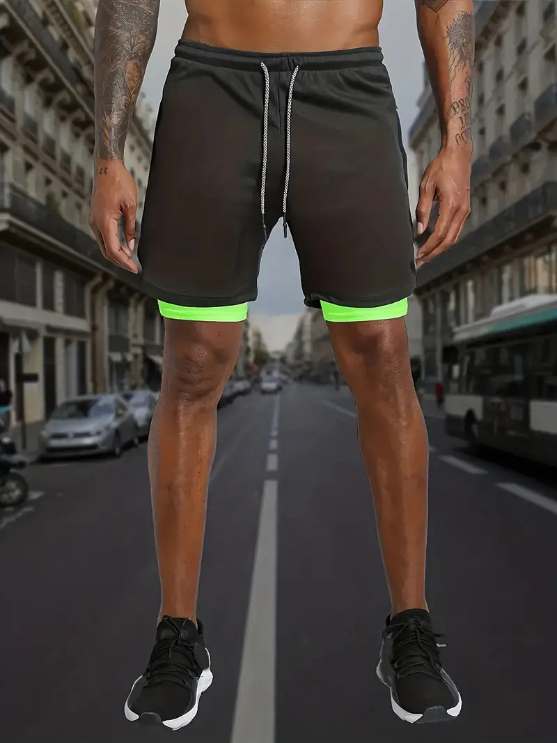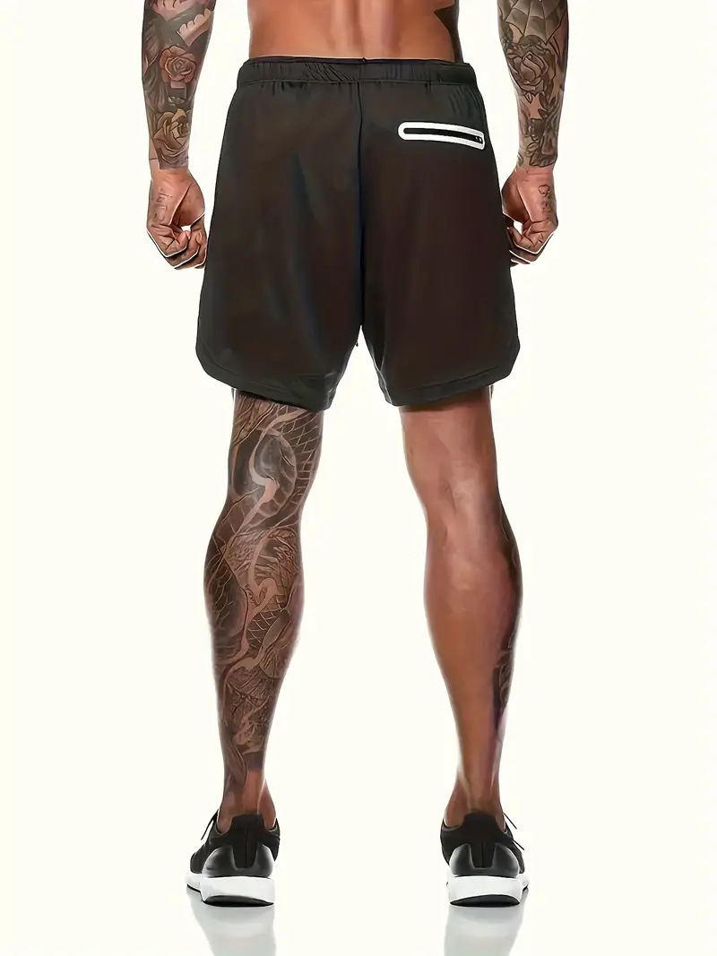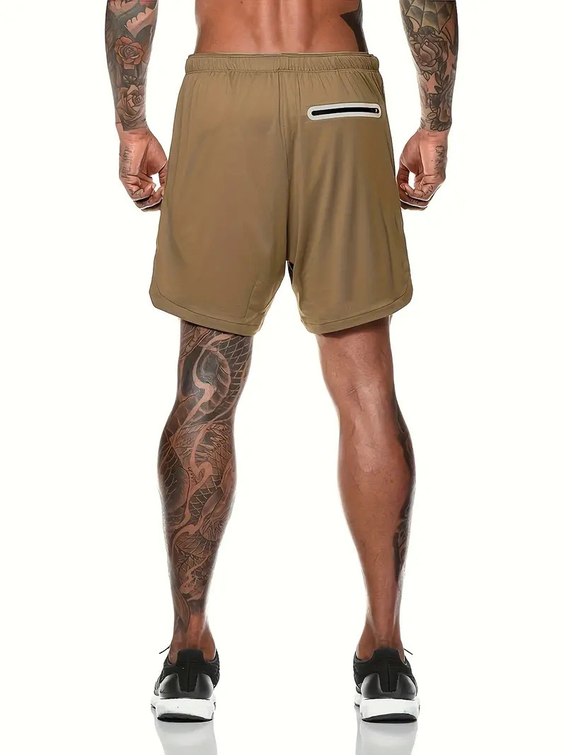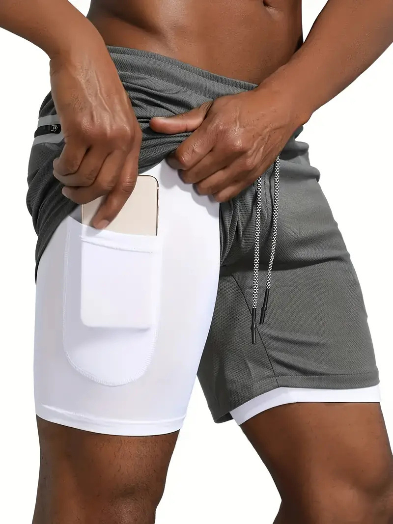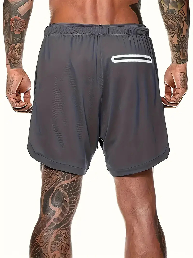 유럽 사이즈 2025 여름 이중 레이어 속건 통기성 남성 반바지 스포츠 트레이닝 러닝 무지 5부 스포츠 반바지
