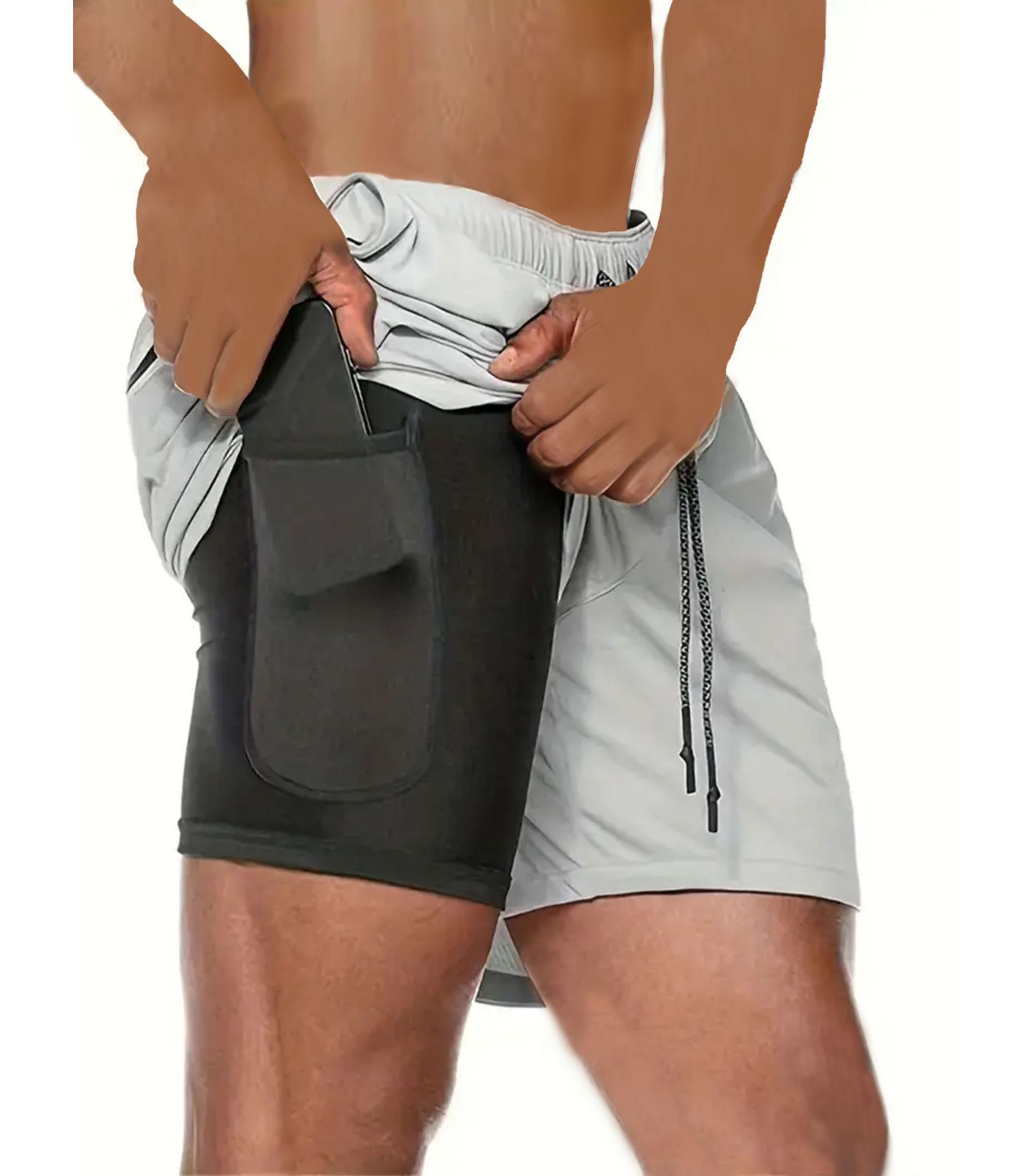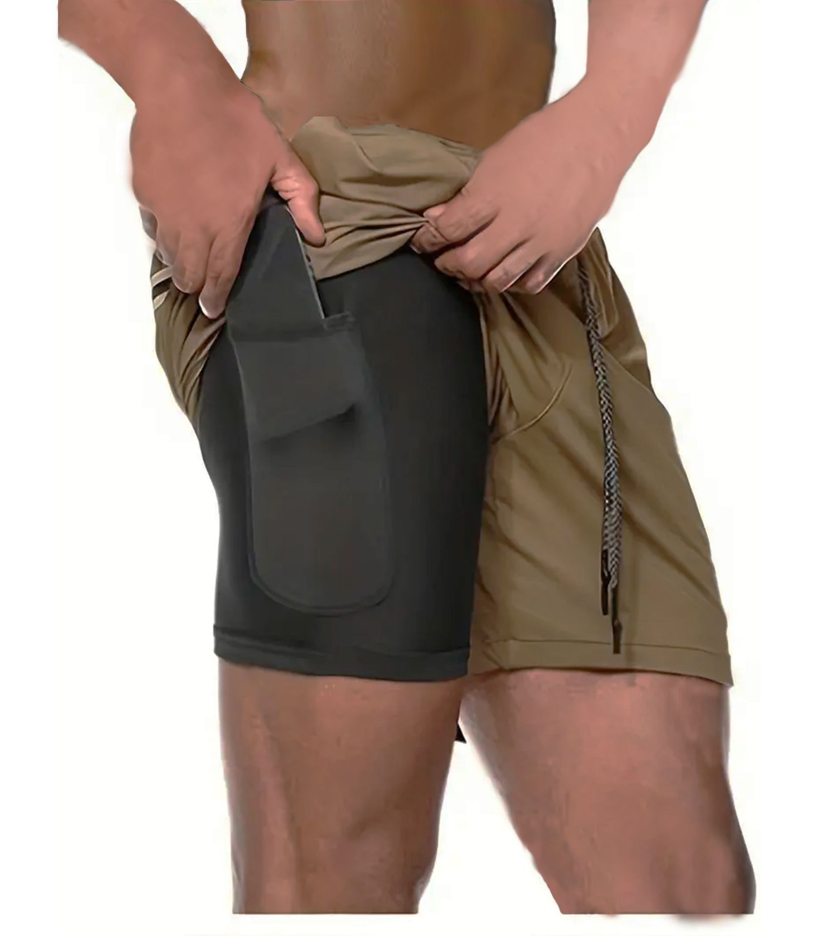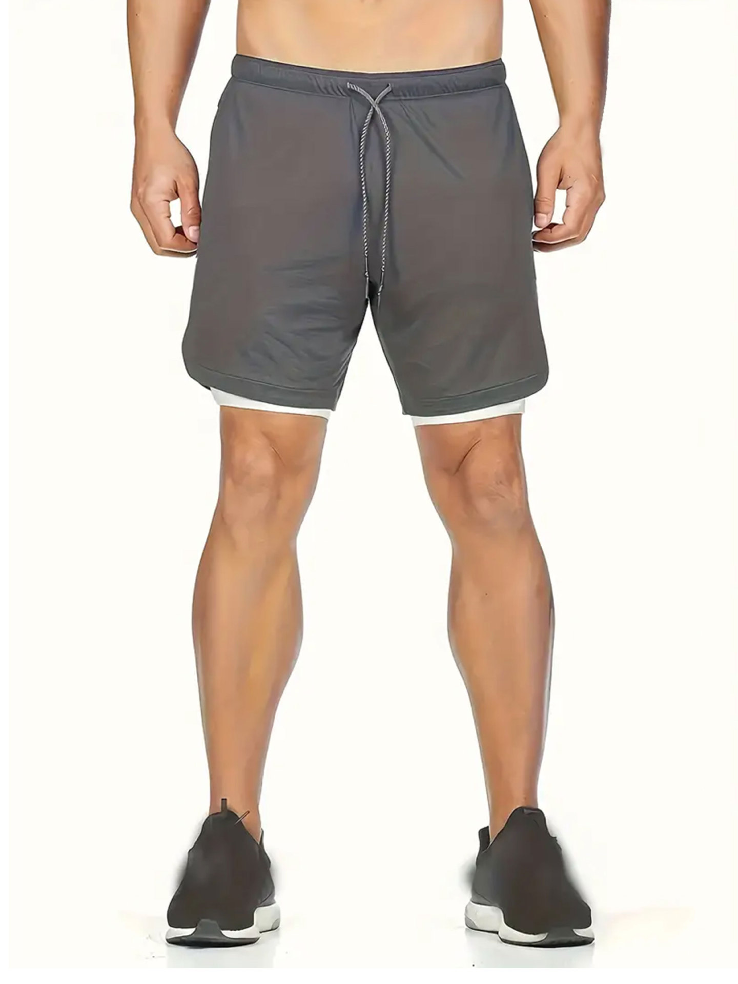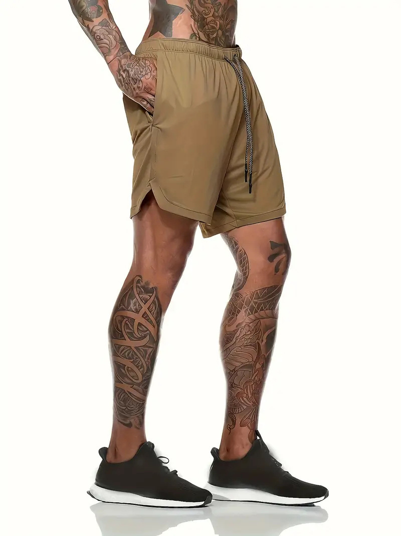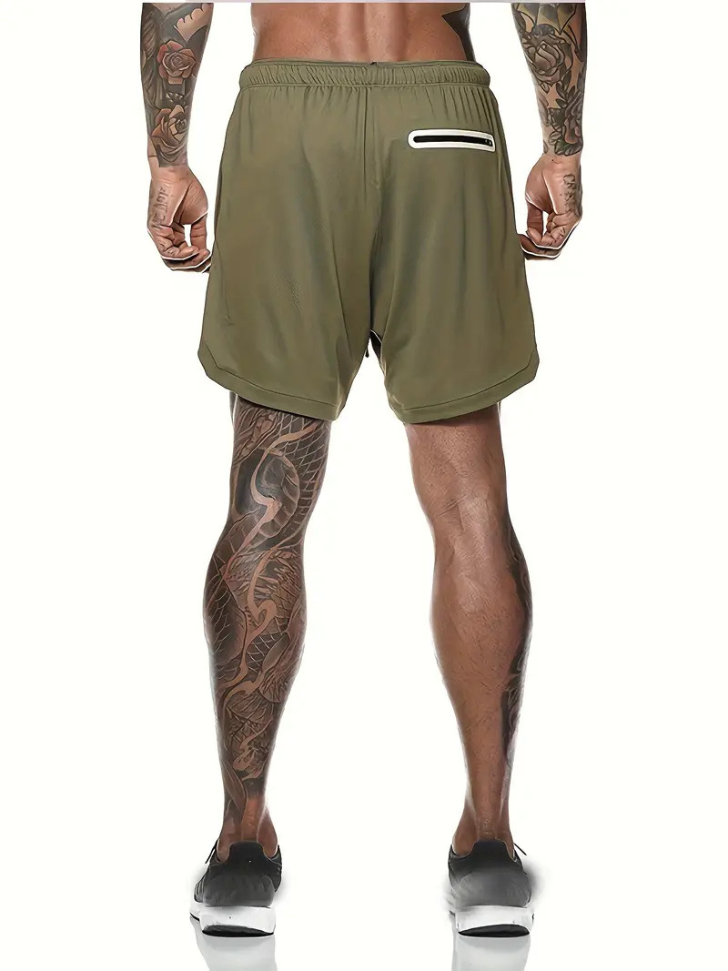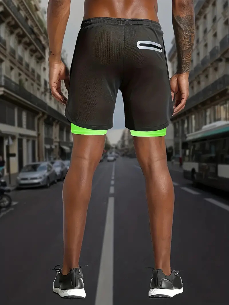 유럽 사이즈 2025 여름 이중 레이어 속건 통기성 남성 반바지 스포츠 트레이닝 러닝 무지 5부 스포츠 반바지