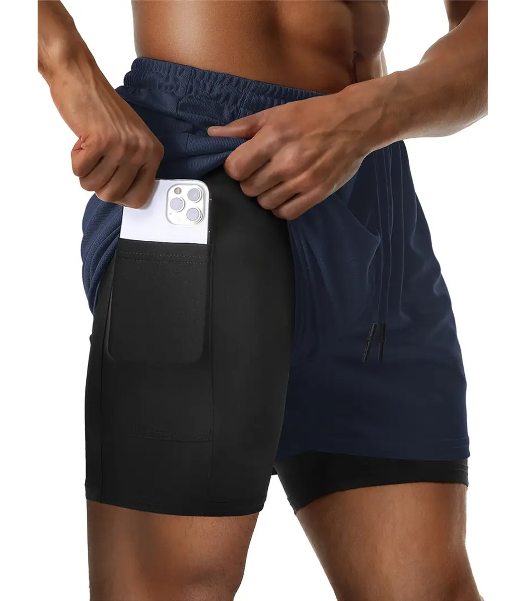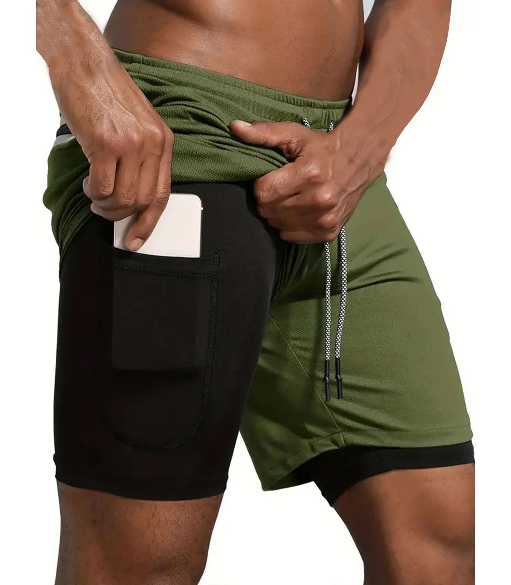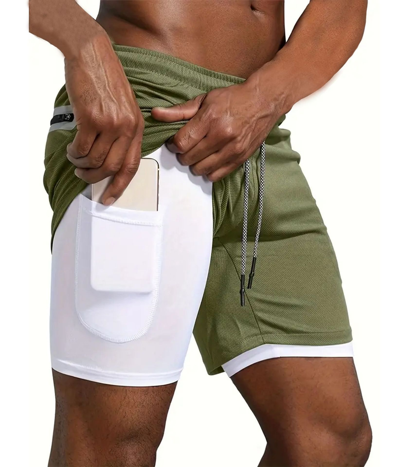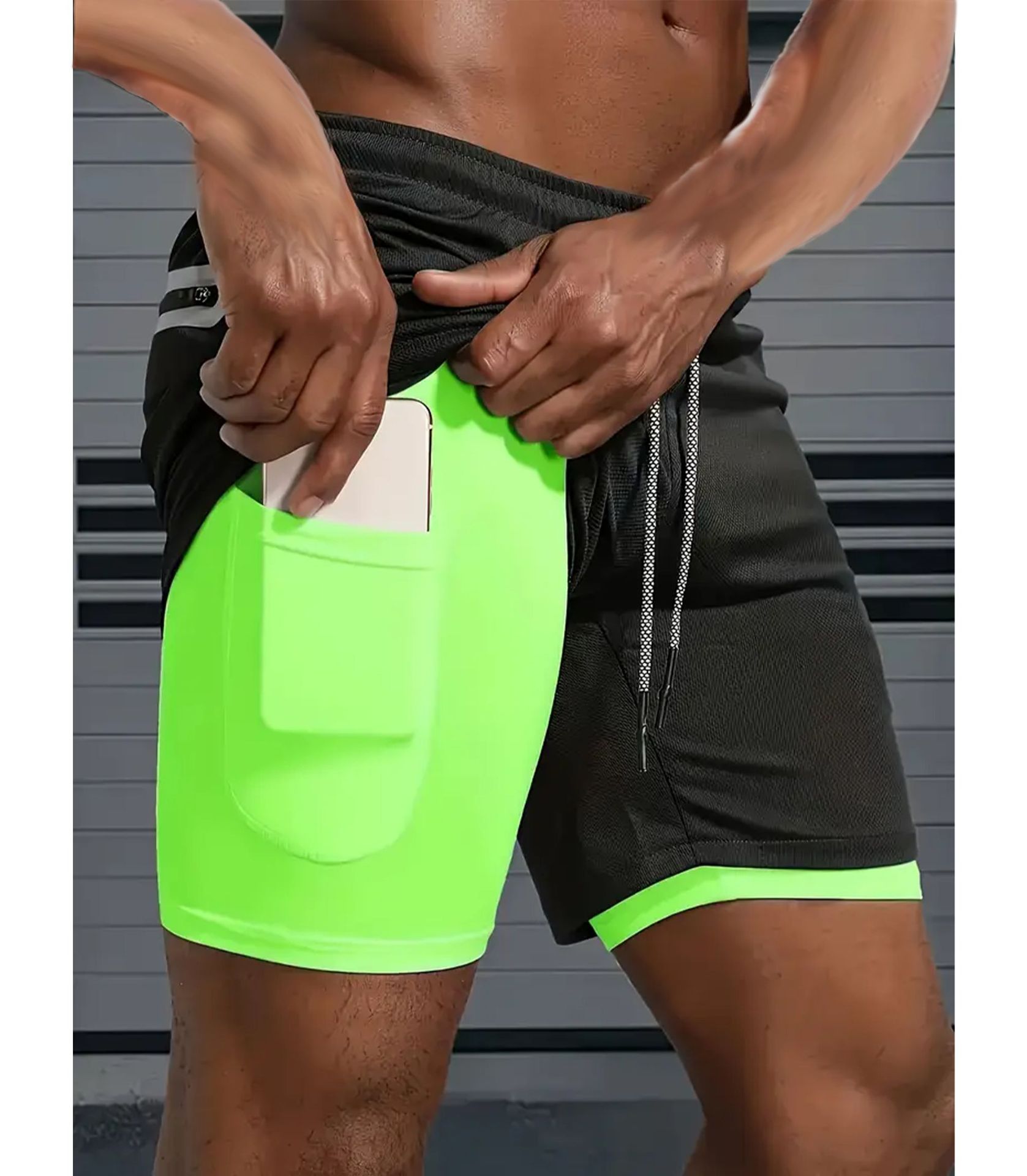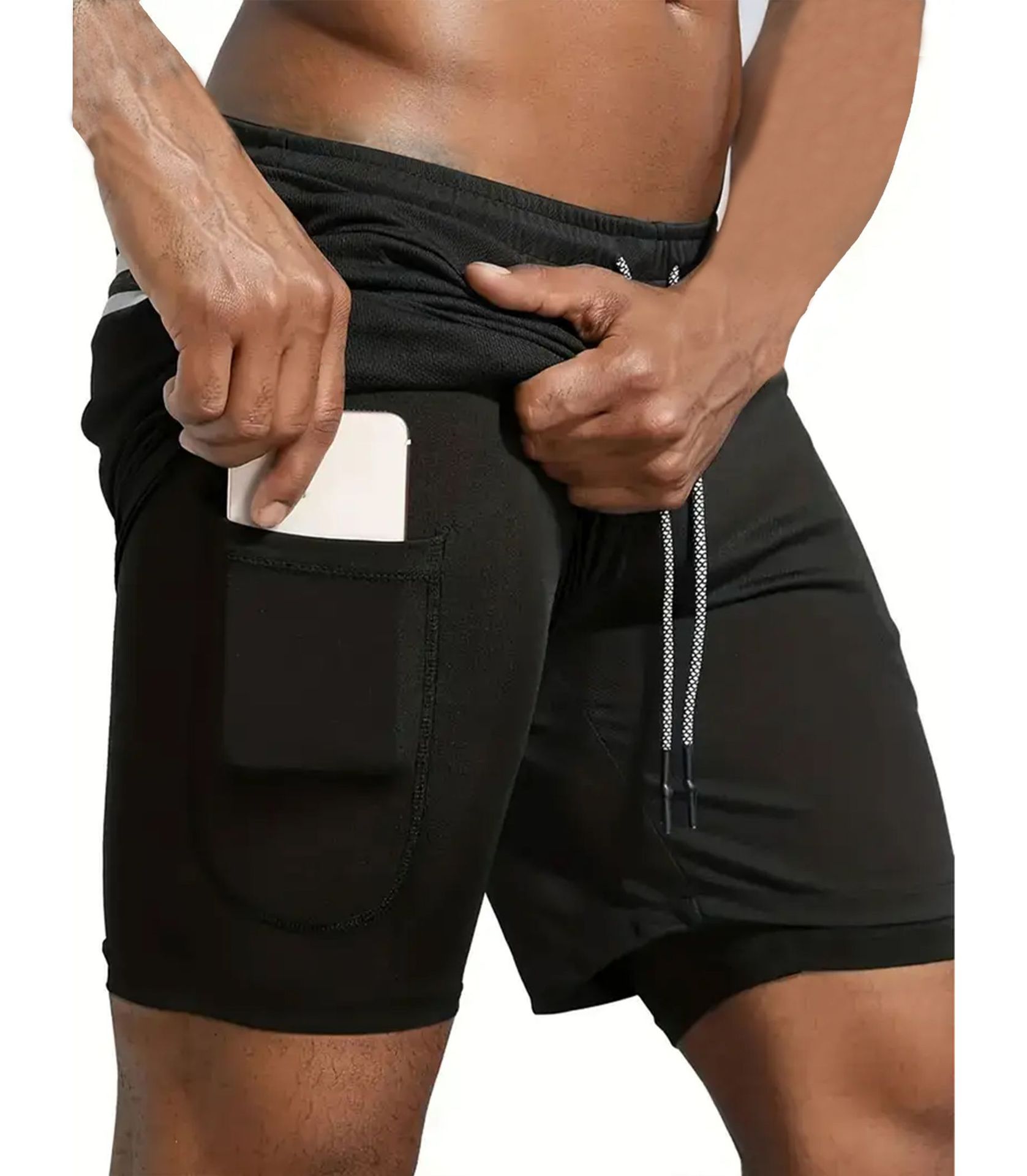 유럽 사이즈 2025 여름 이중 레이어 속건 통기성 남성 반바지 스포츠 트레이닝 러닝 무지 5부 스포츠 반바지