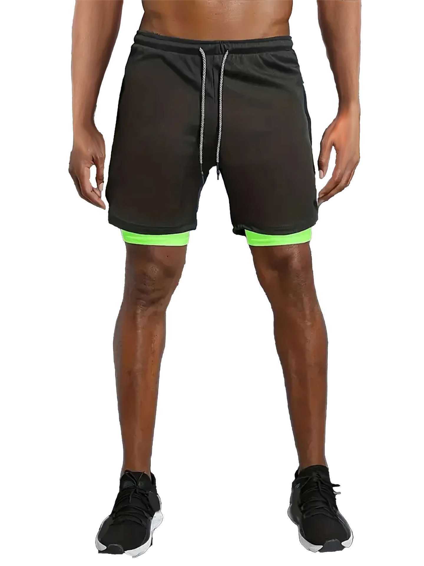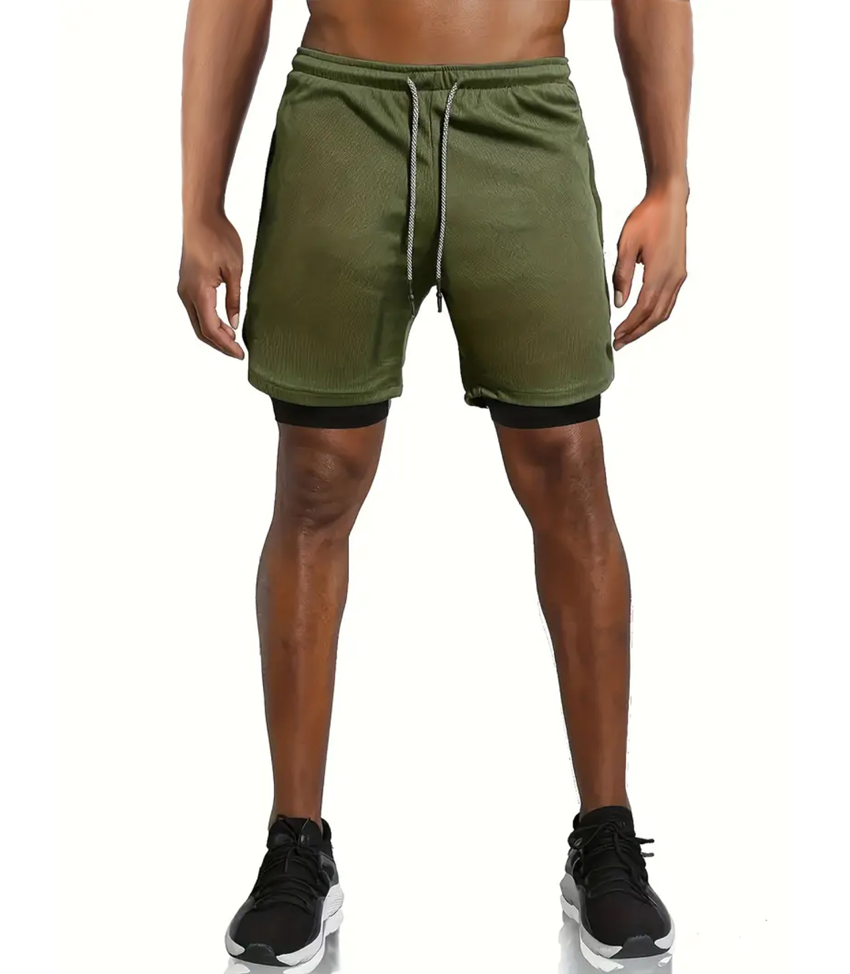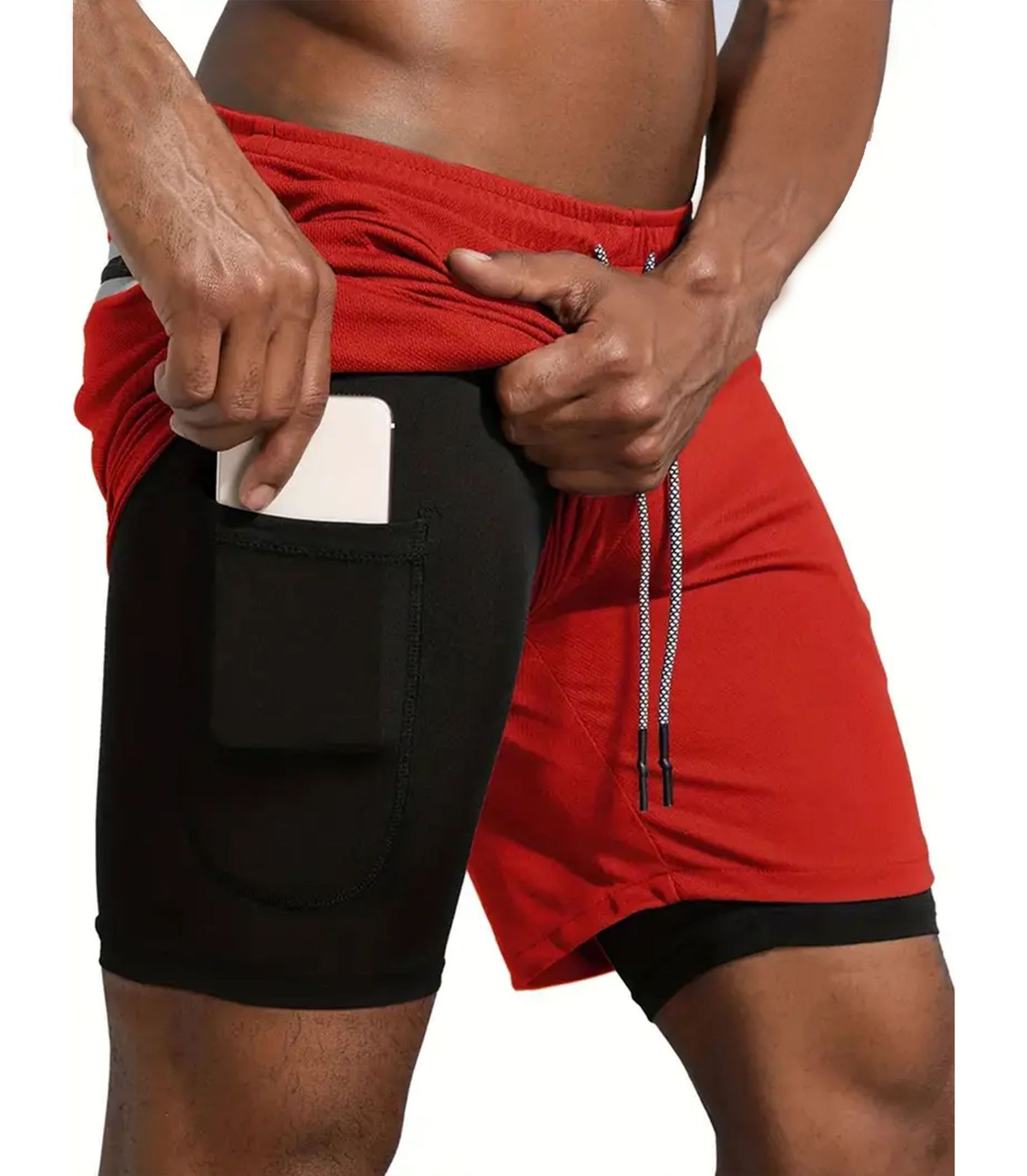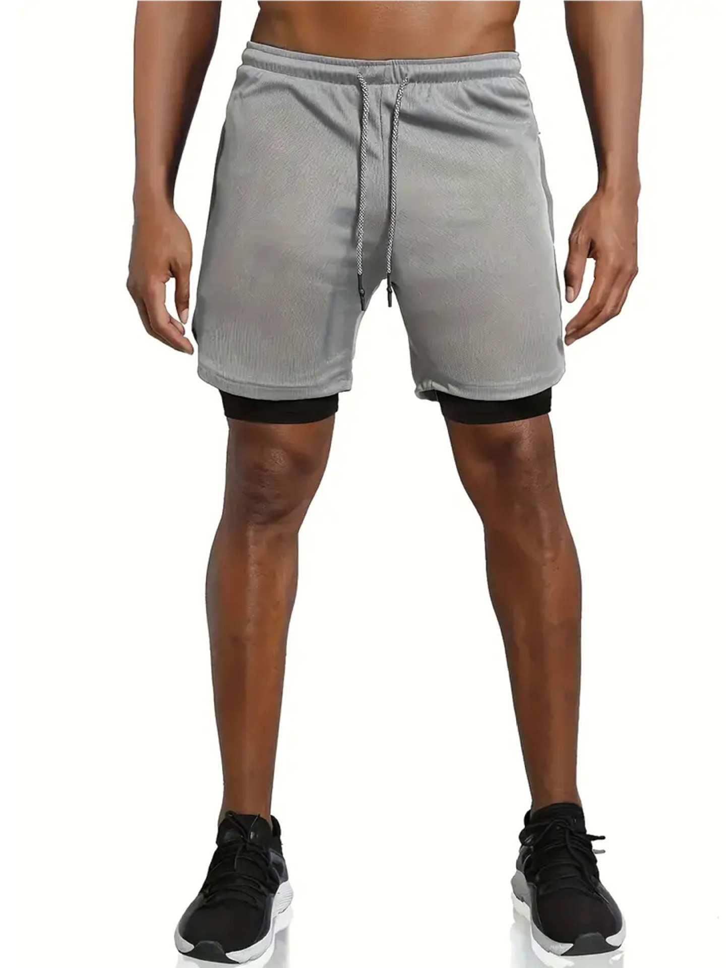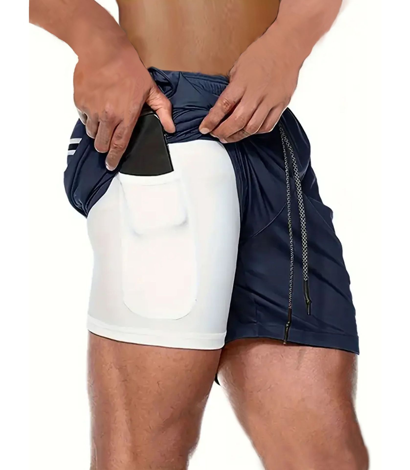 유럽 사이즈 2025 여름 이중 레이어 속건 통기성 남성 반바지 스포츠 트레이닝 러닝 무지 5부 스포츠 반바지