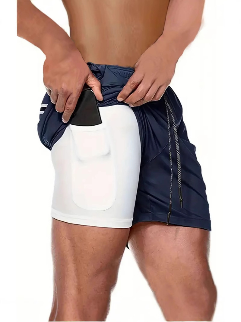 유럽 사이즈 2025 여름 이중 레이어 속건 통기성 남성 반바지 스포츠 트레이닝 러닝 무지 5부 스포츠 반바지스토어 가기