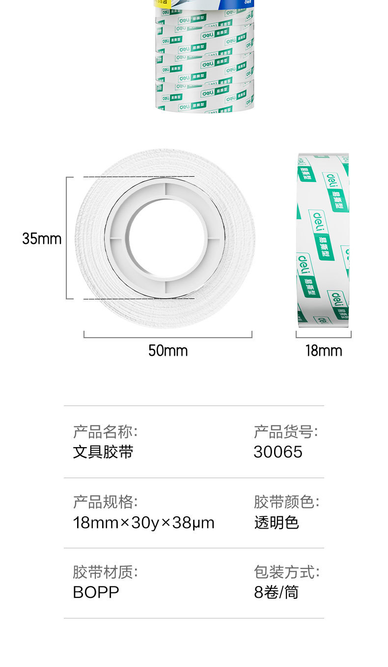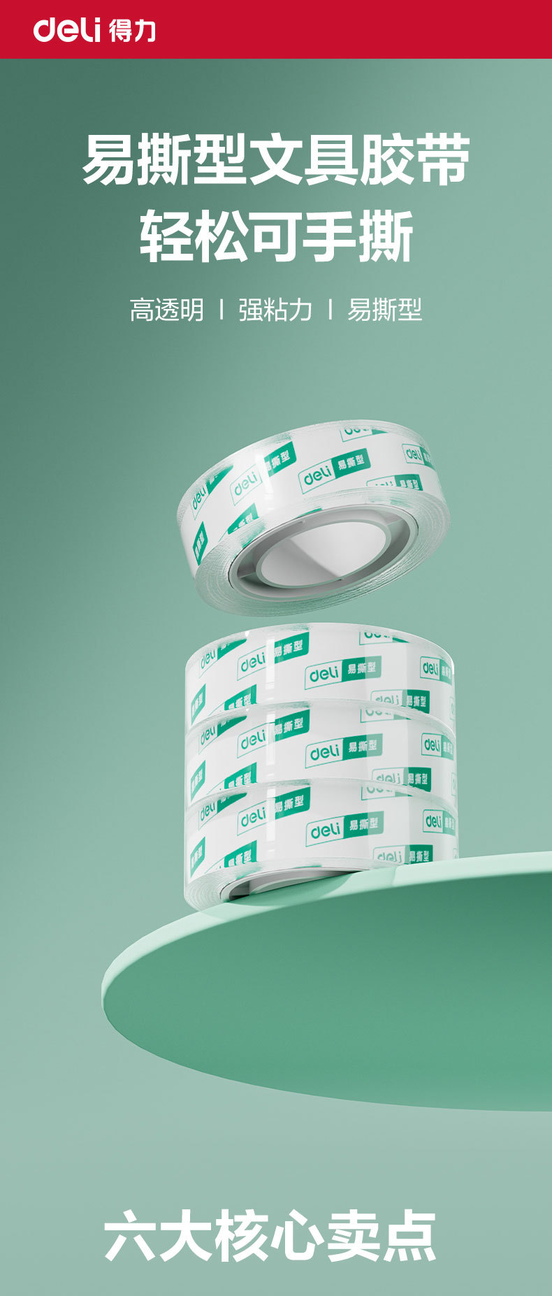 델리 30065 문구용 고투명 이지티어블 테이프 18mm 투명 문구 테이프 소형 테이프 8롤 강력 접착