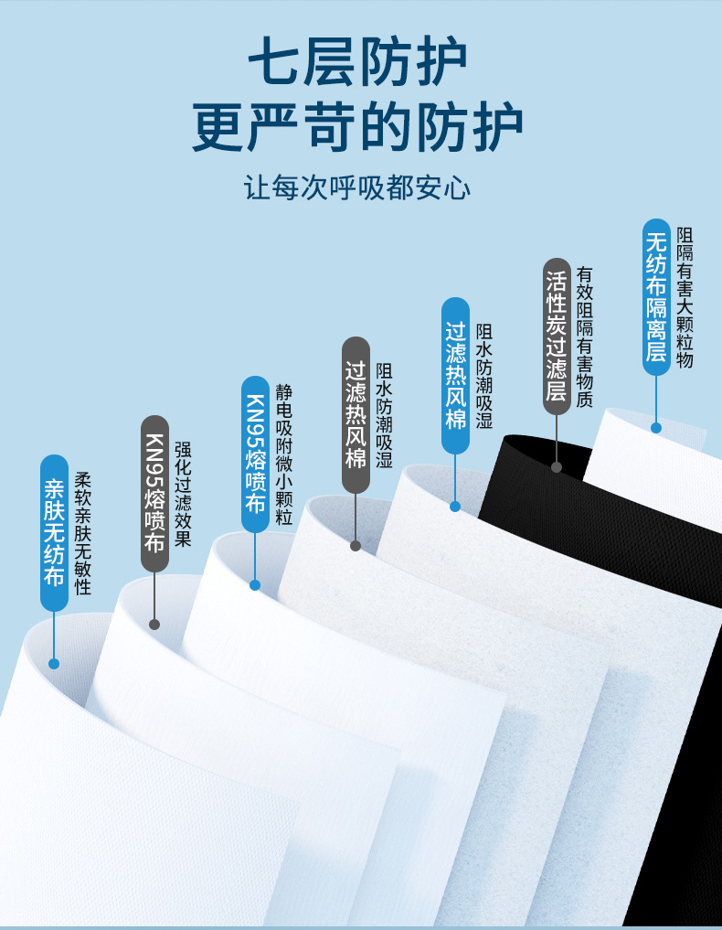 • 회색 7겹 - 호흡 밸브 포함 - 스폰지 스트립 포함 - 활성탄 포함