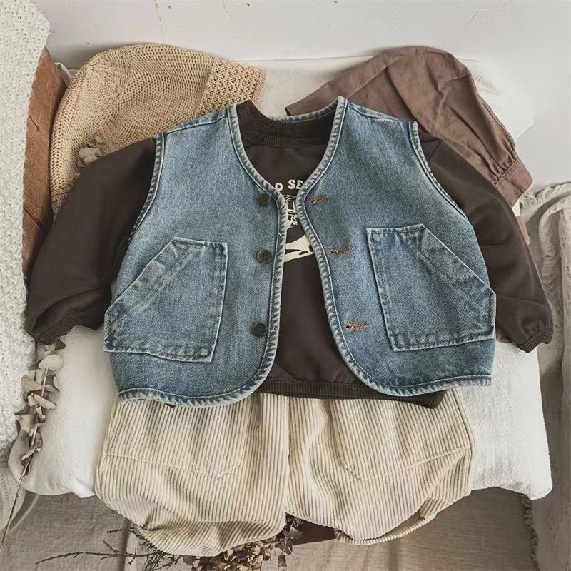남학생 데님 조끼 2025 쿨 여름 신식 서양식 올매치 아우터웨어 중소 어린이 아기 트렌디 조끼스토어 가기