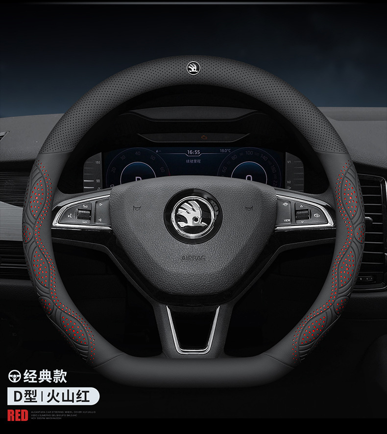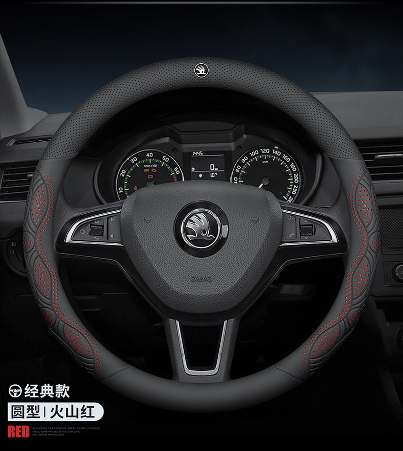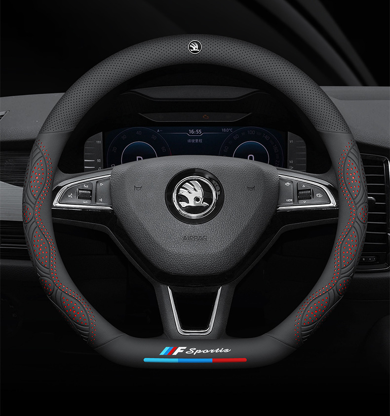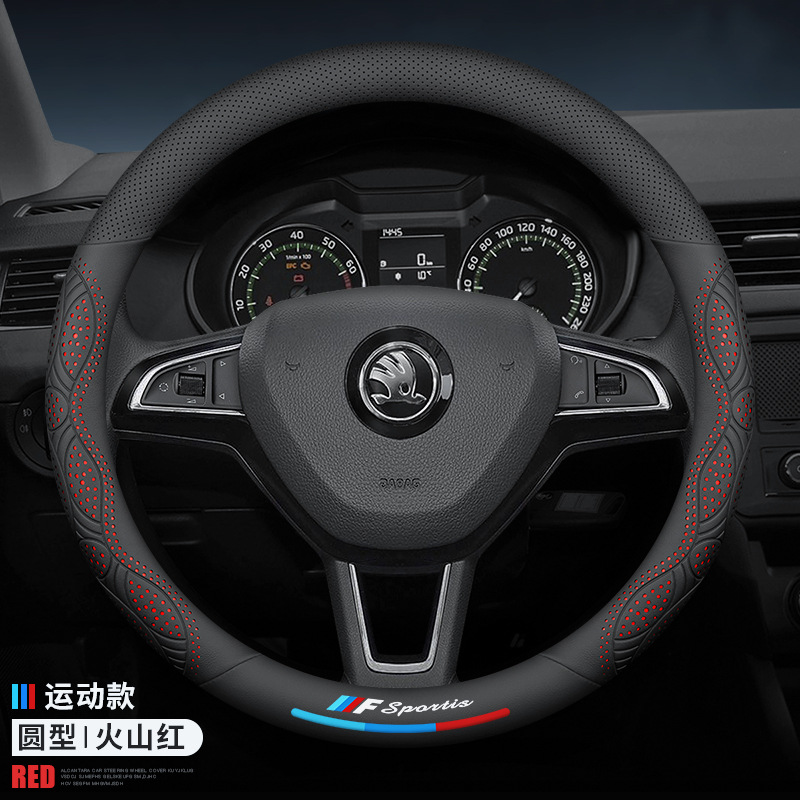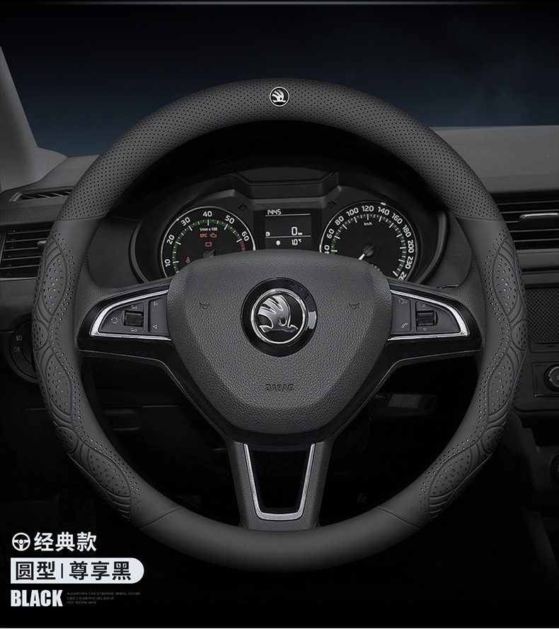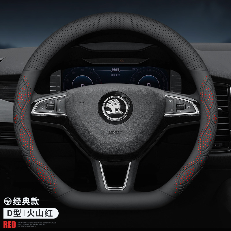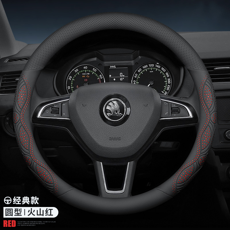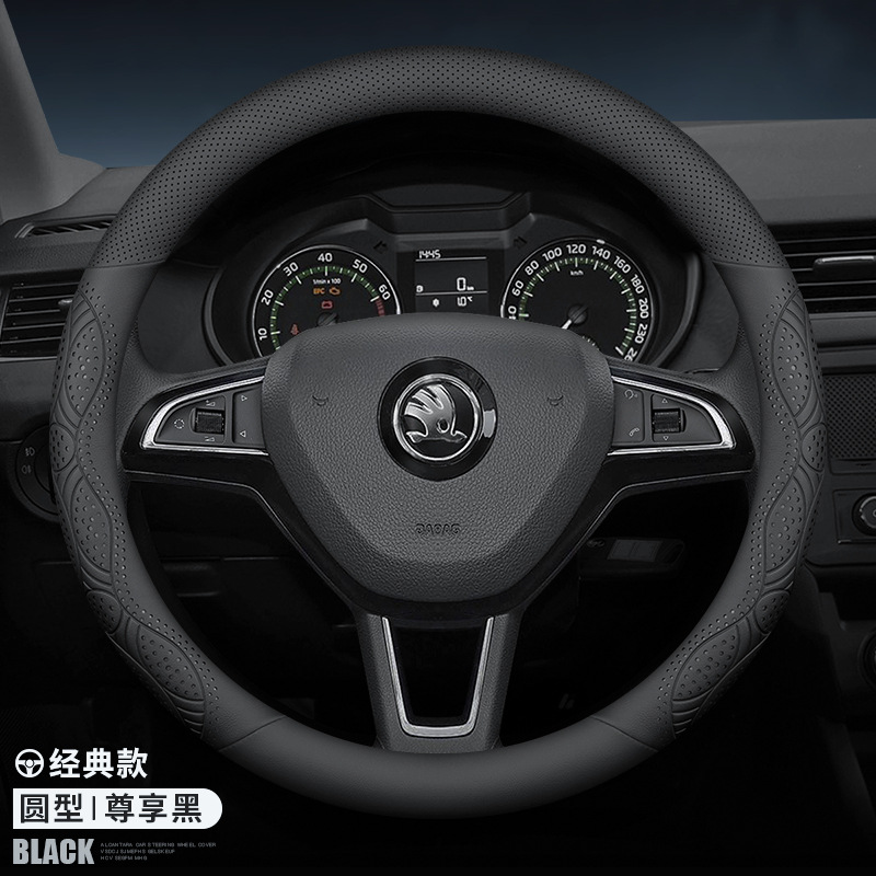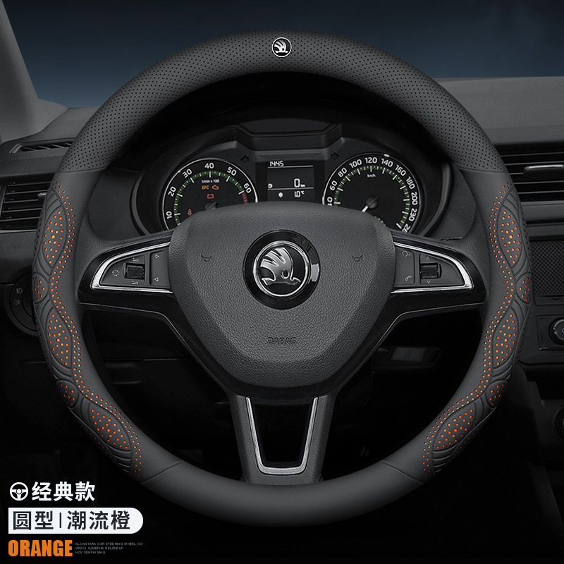Skoda Komick 스티어링 휠 커버 18-24 초박형 통기성 가죽 이음새없는 나파 핸들 커버에 적합