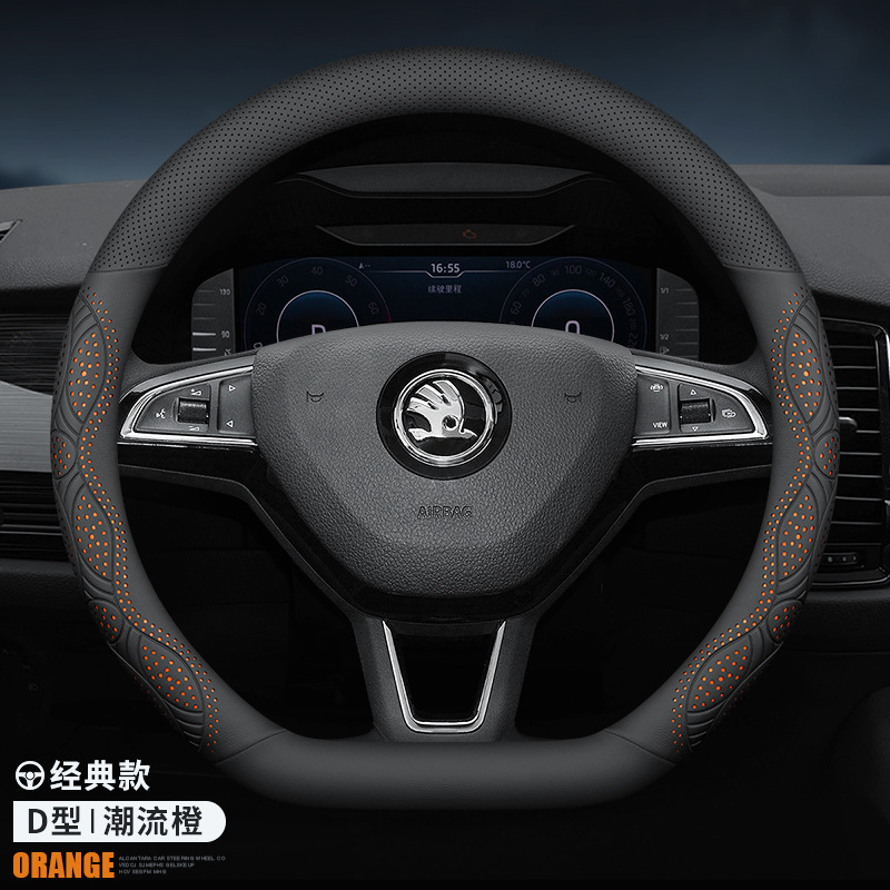 Skoda Komick 스티어링 휠 커버 18-24 초박형 통기성 가죽 이음새없는 나파 핸들 커버에 적합스토어 가기