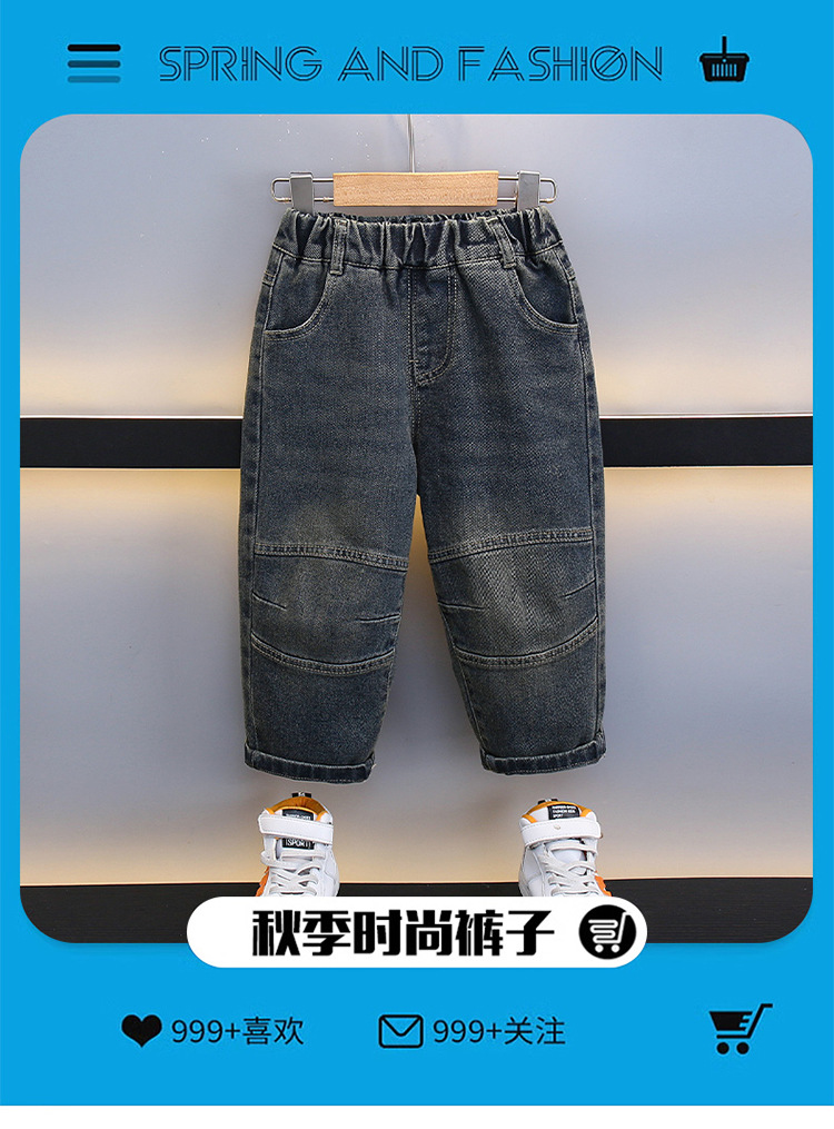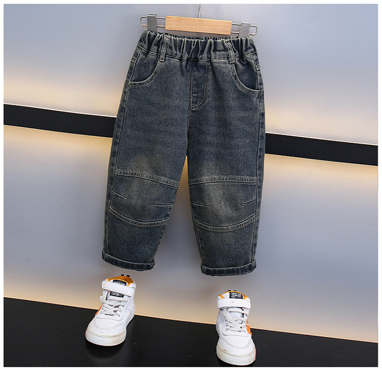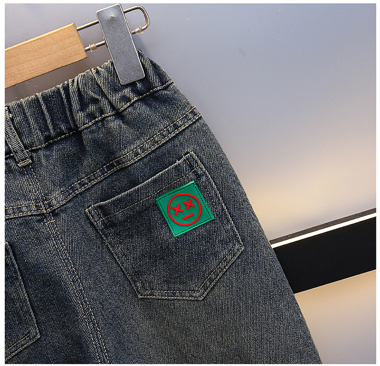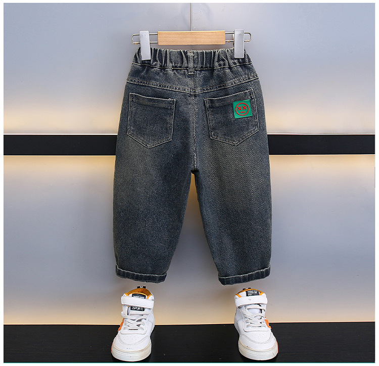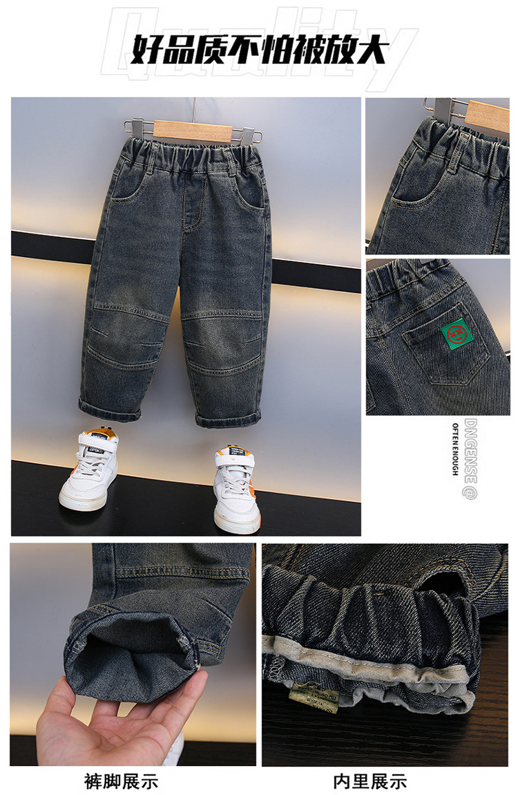 소년 데님 넓은 다리 바지 2025 년 봄과 가을 새로운 어린이 느슨한 잘 생긴 유행 아기 가을 스트레이트 바지스토어 가기