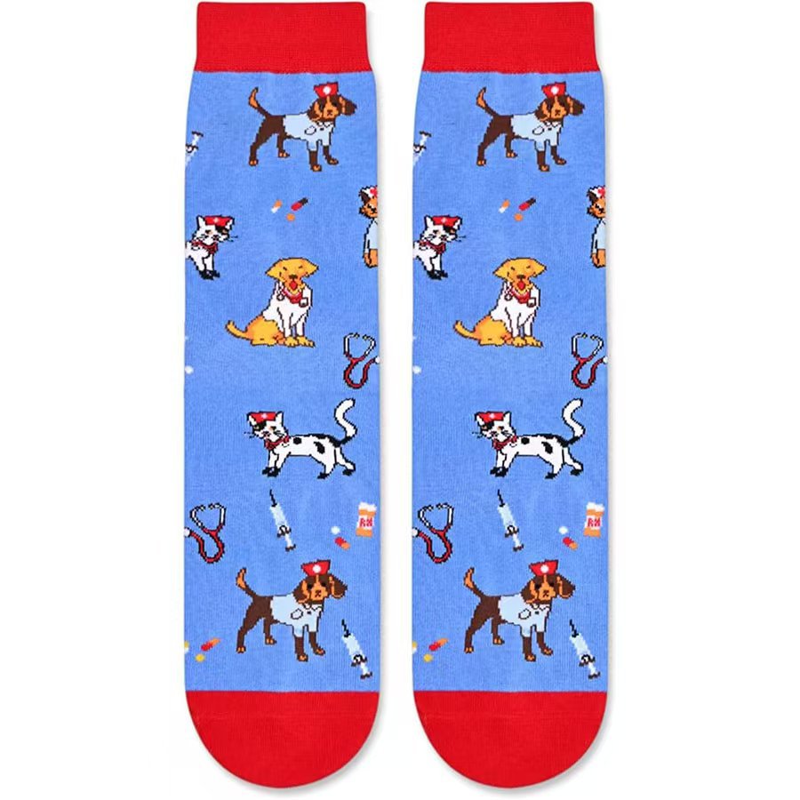 热卖款医生护士听诊袜宠物听诊器针筒图案