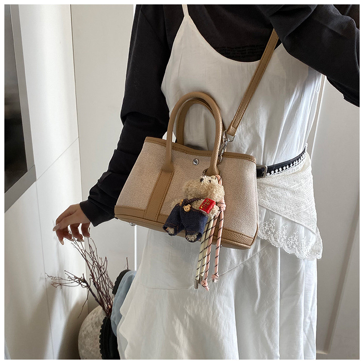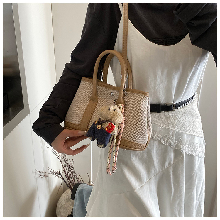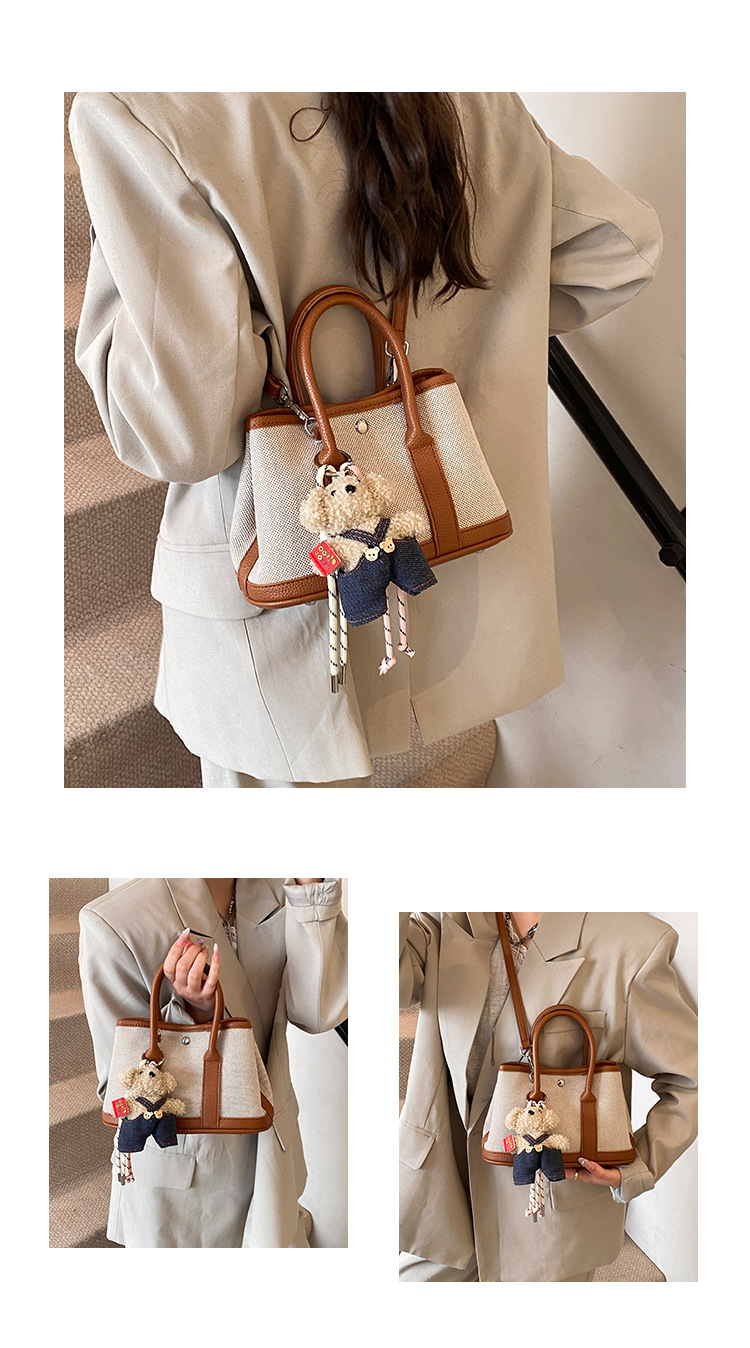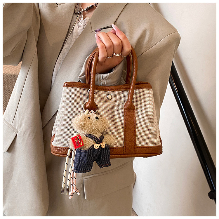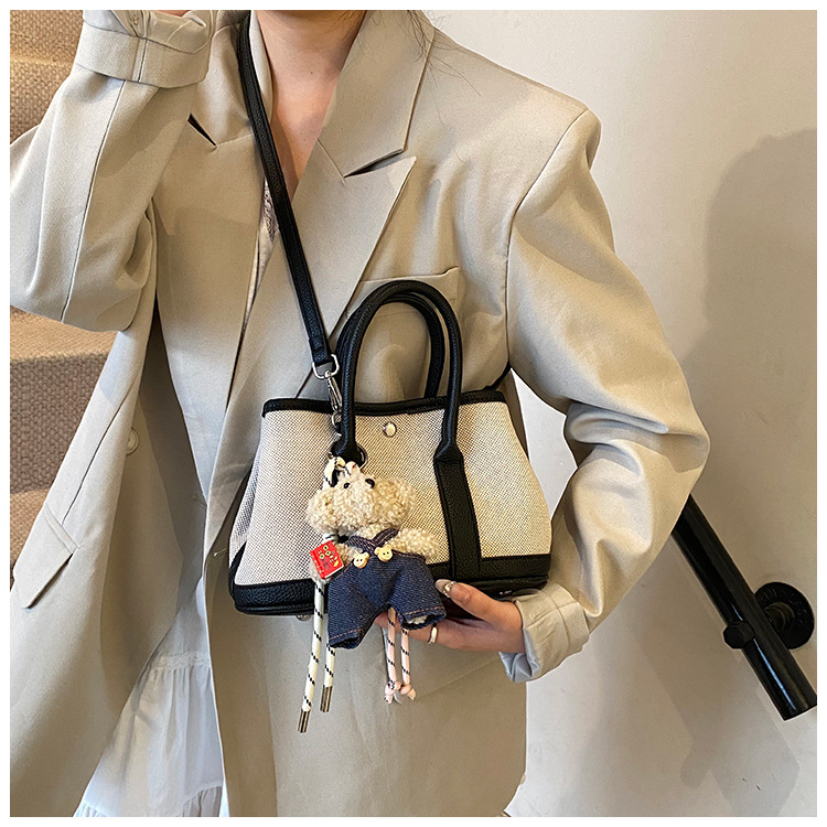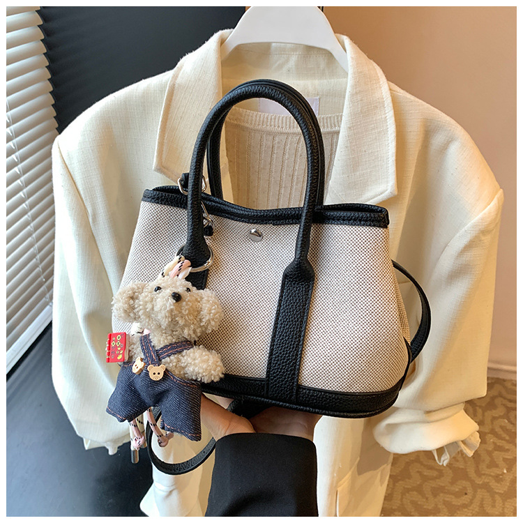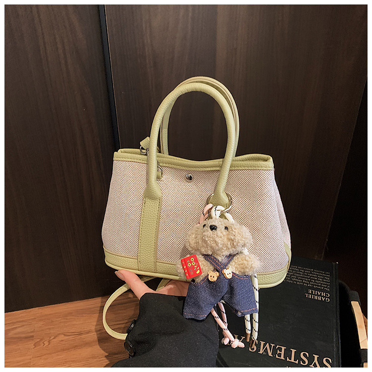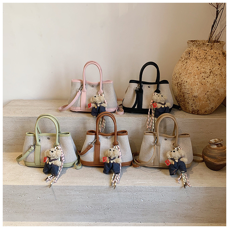 대외 무역 고급 감각 대용량 캔버스 가방 신선한 스타일 곰 펜던트 크로스 바디 백 유행 올 매치 캐주얼 숄더 백
