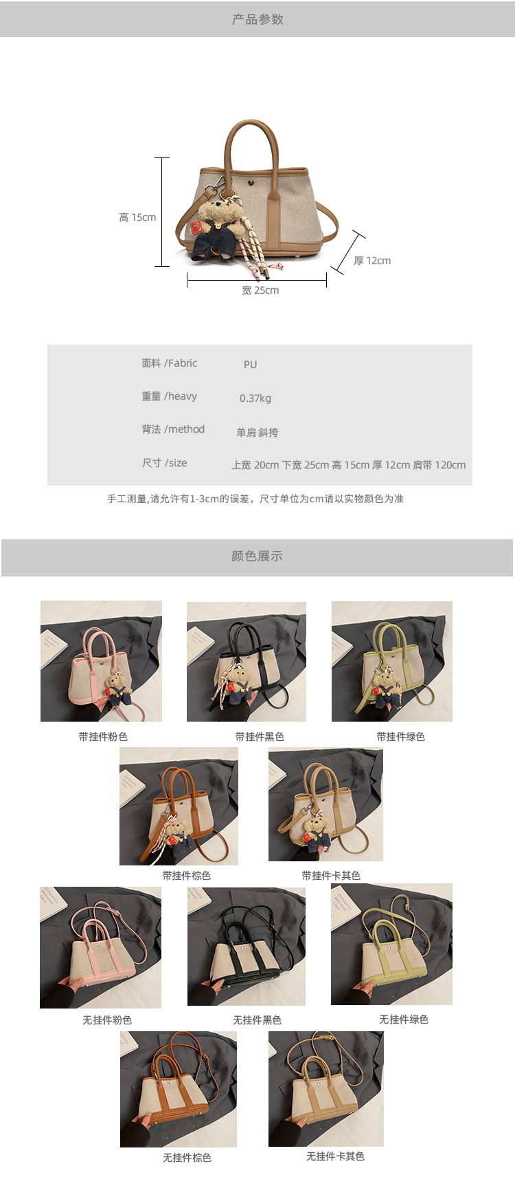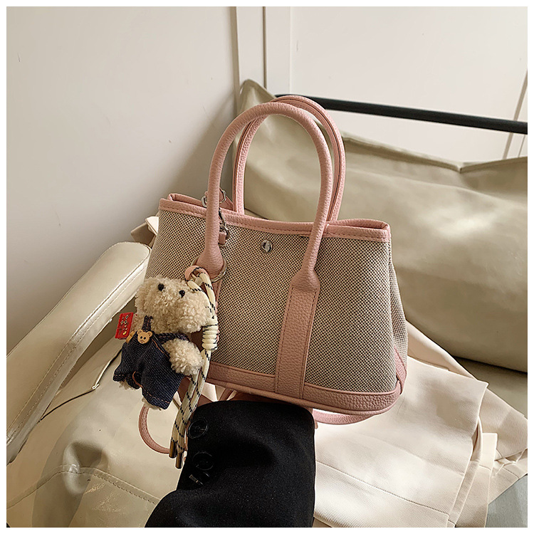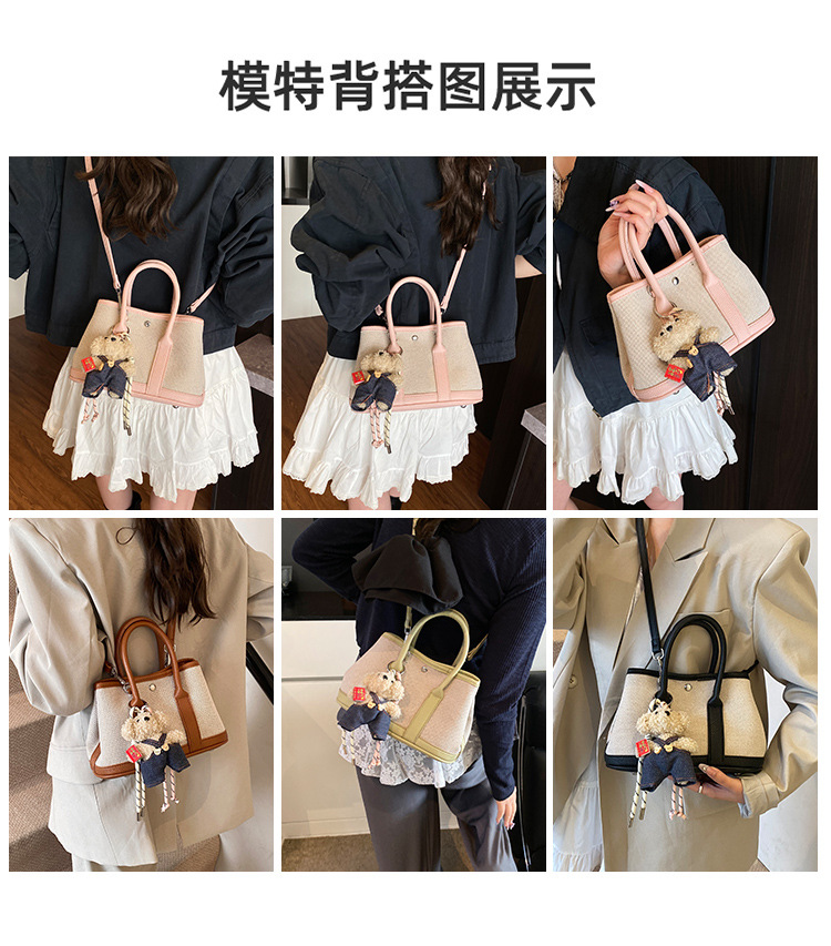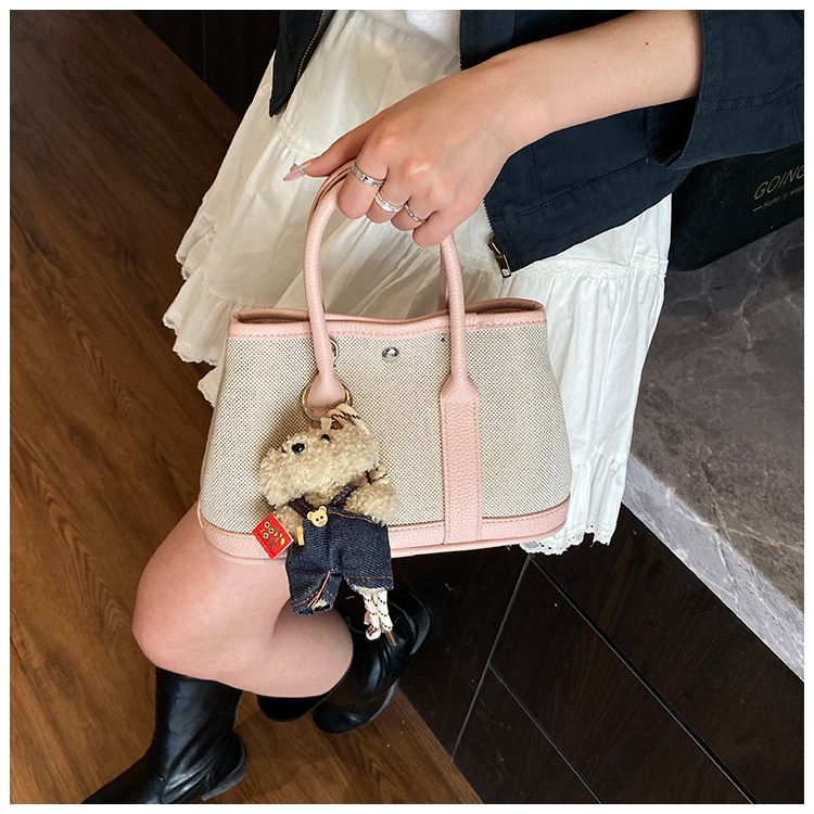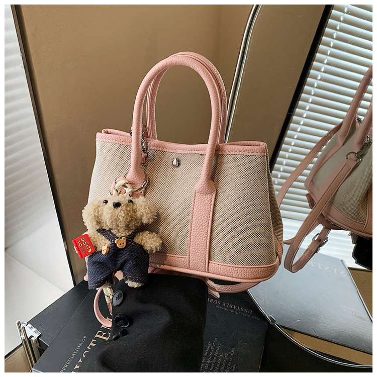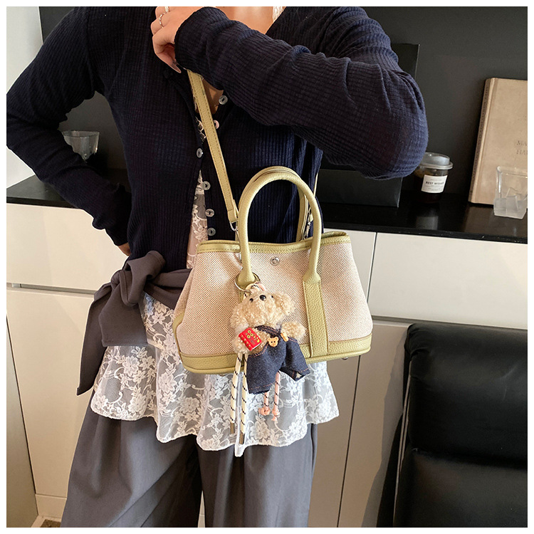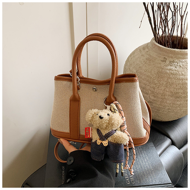 대외 무역 고급 감각 대용량 캔버스 가방 신선한 스타일 곰 펜던트 크로스 바디 백 유행 올 매치 캐주얼 숄더 백