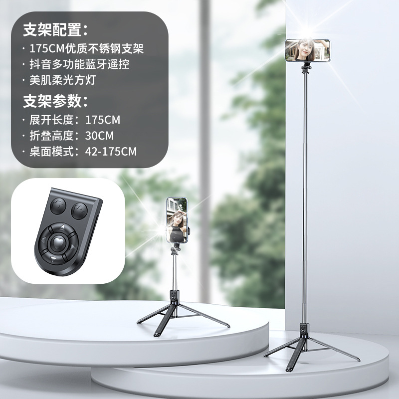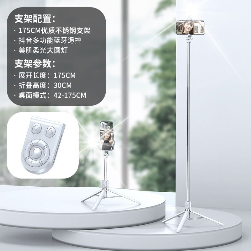Douyin 필 라이트 휴대 전화 셀카 스틱 홀더를 촬영할 수 있는 인기 있는 확장형 1.7m 스테인레스 스틸 블루투스 다기능 모델스토어 가기