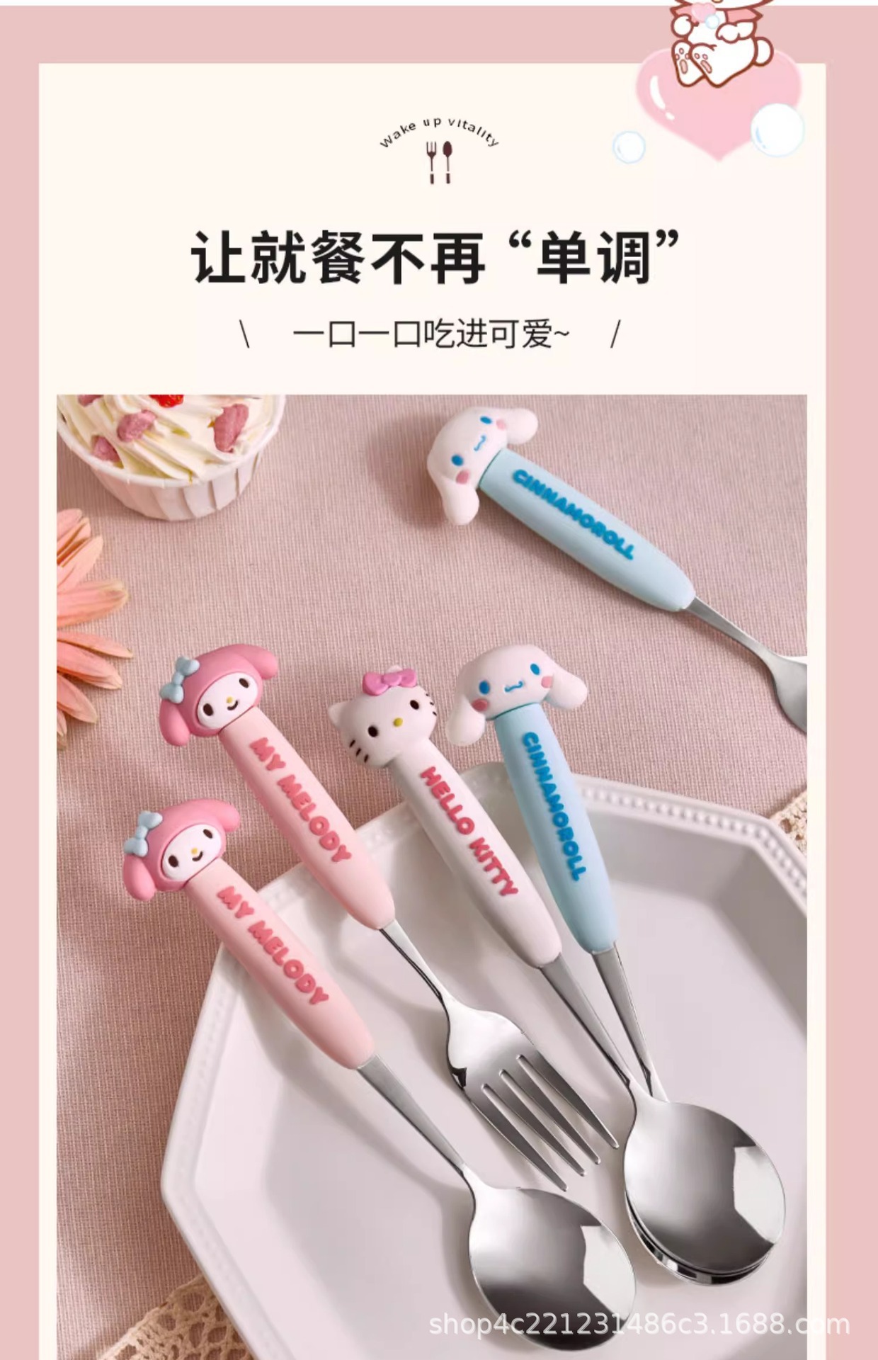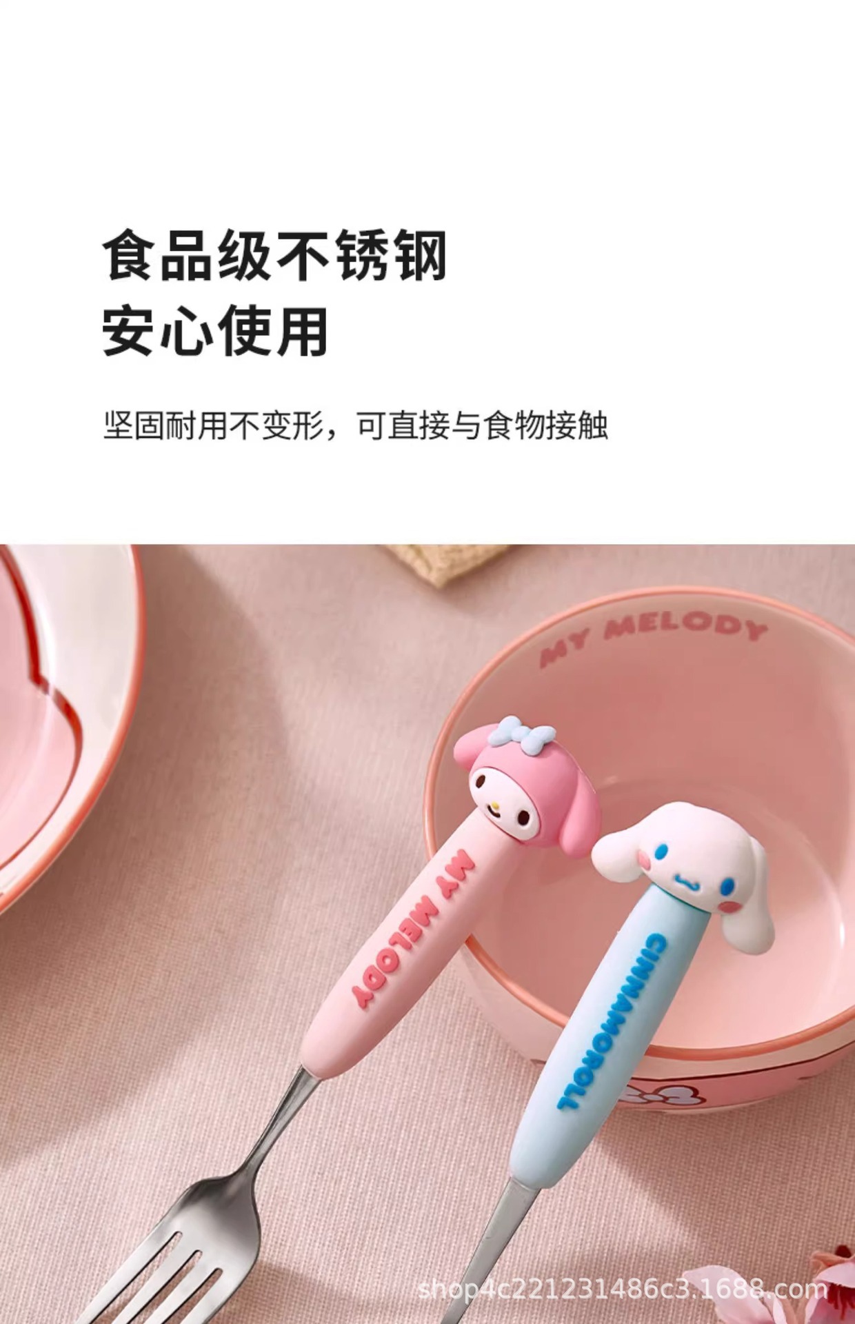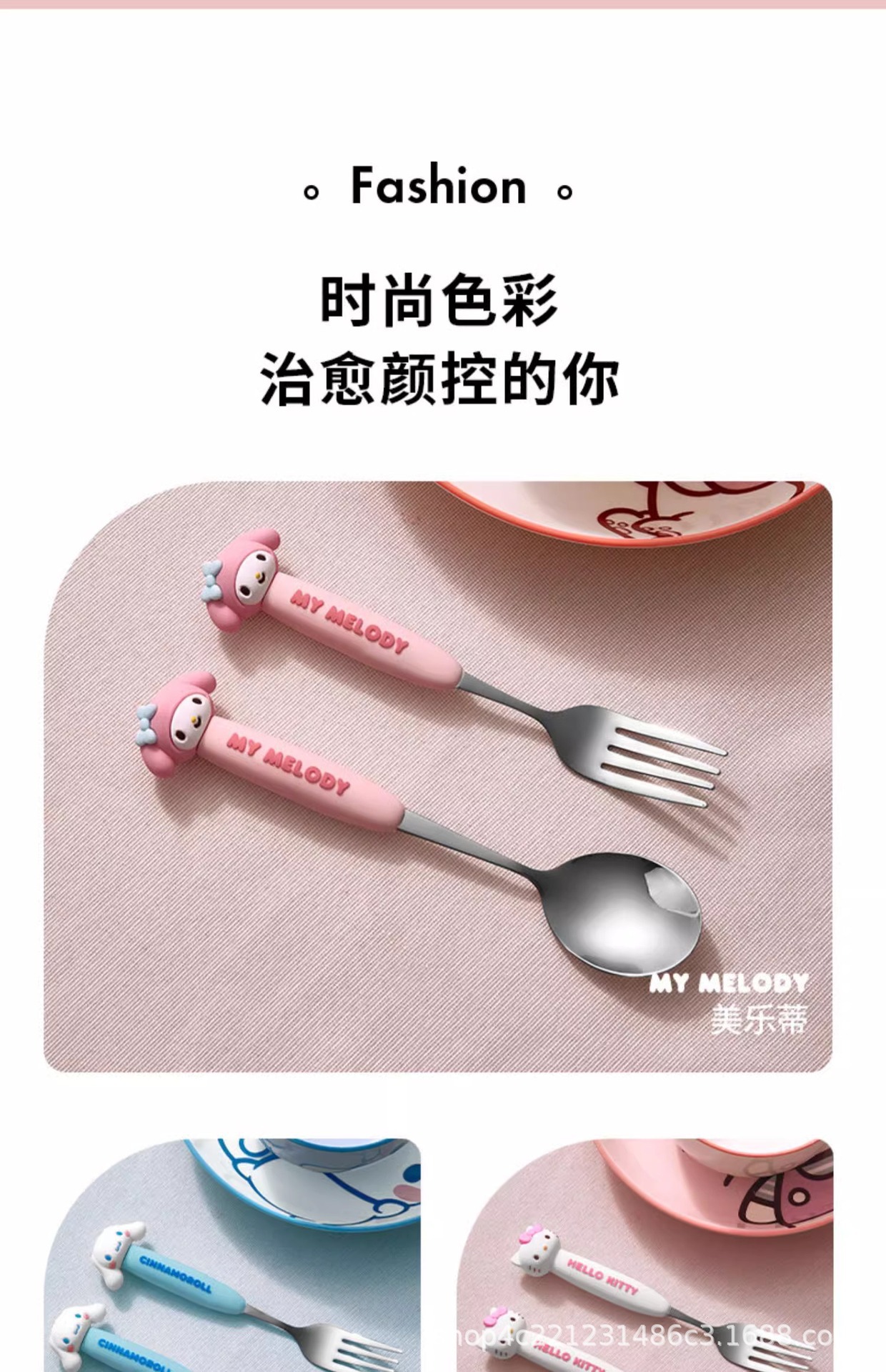 三丽鸥可爱餐具玉桂狗KT美乐蒂勺子叉子套装儿童学生吃饭调羹