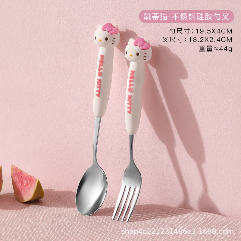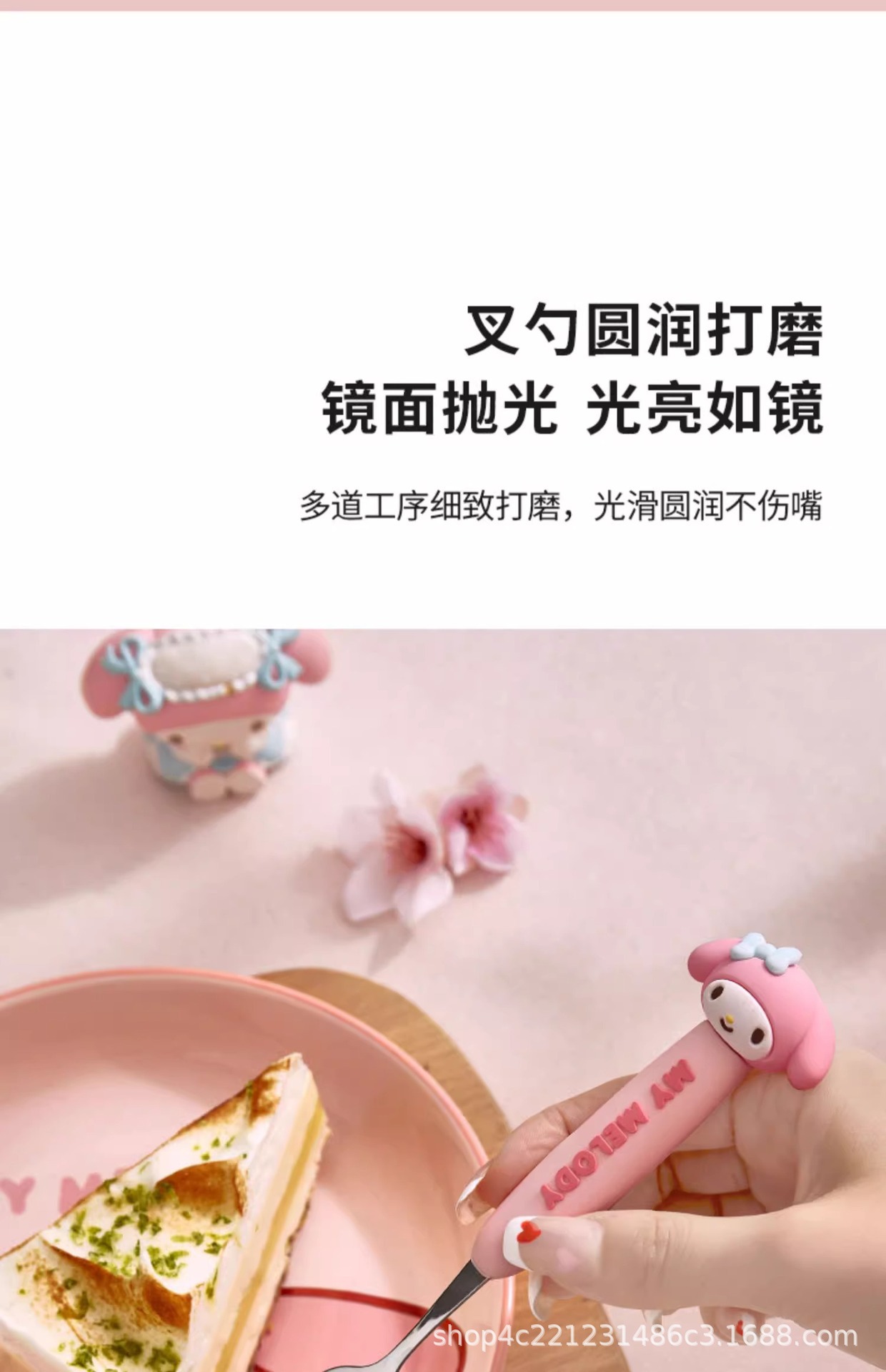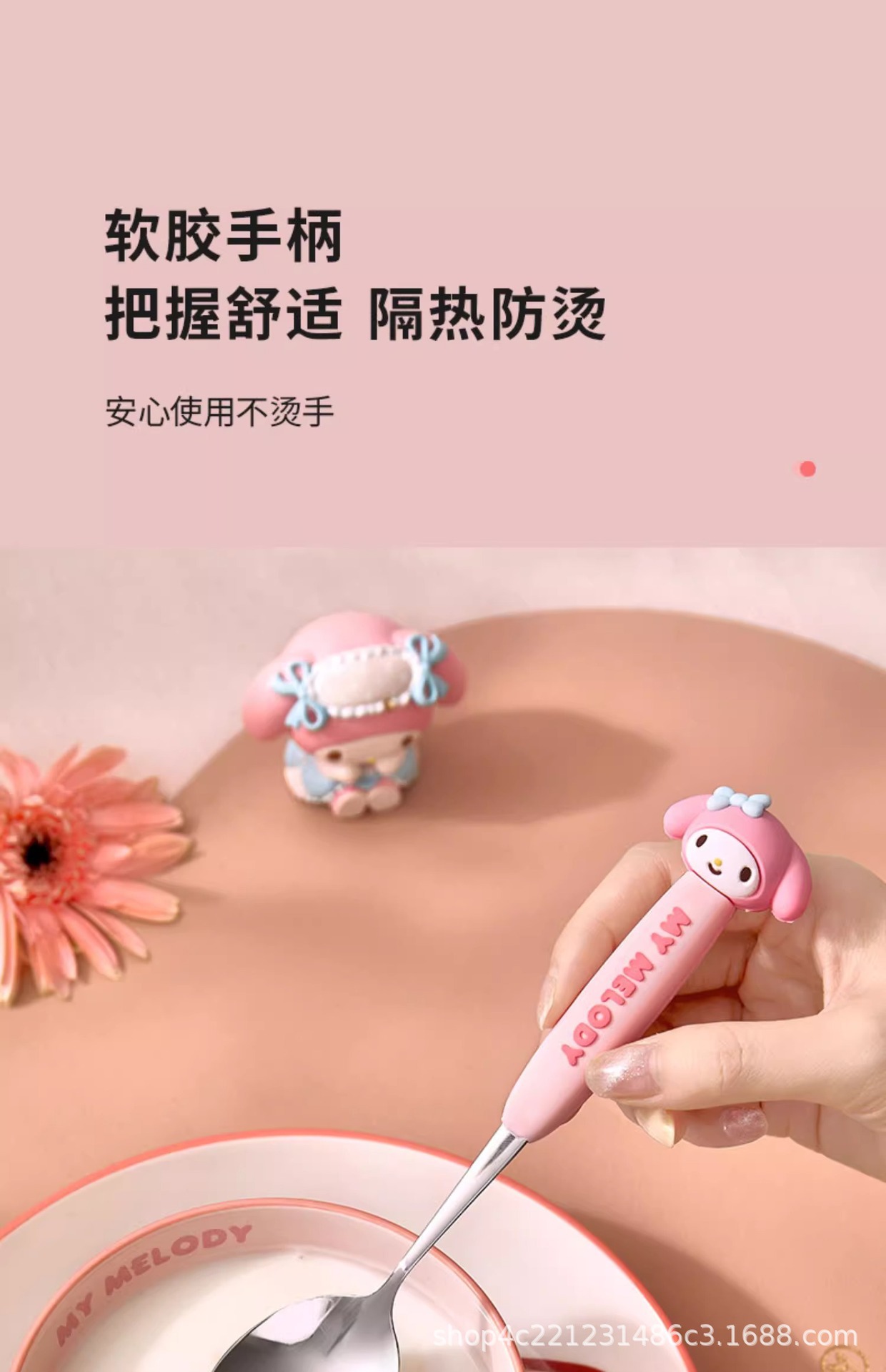 三丽鸥可爱餐具玉桂狗KT美乐蒂勺子叉子套装儿童学生吃饭调羹