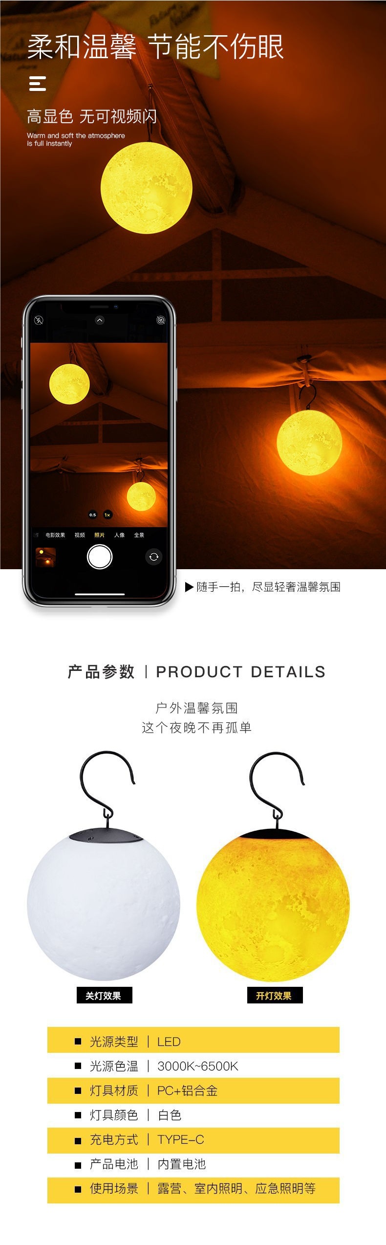 • HT 초장수 배터리 수명 달 램프 - 초장수 배터리 수명 3000N 3색 달 램프