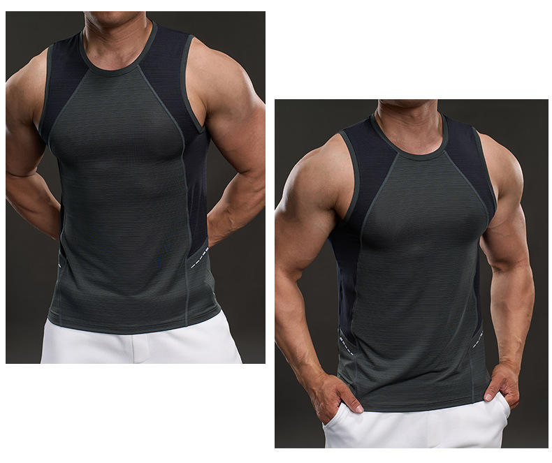 여름 스포츠 조끼 남성용 런닝 피트니스 민소매 티셔츠 속건성 조끼 신축성 있는 얇은 아이스 실크 조끼 남성용스토어 가기