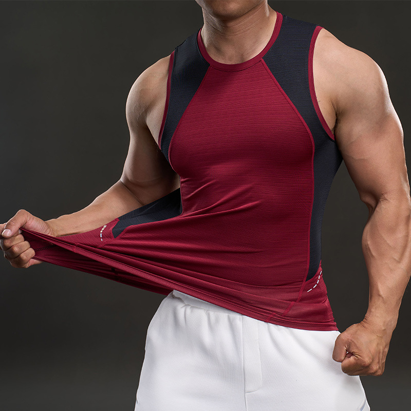 여름 스포츠 조끼 남성용 런닝 피트니스 민소매 티셔츠 속건성 조끼 신축성 있는 얇은 아이스 실크 조끼 남성용
