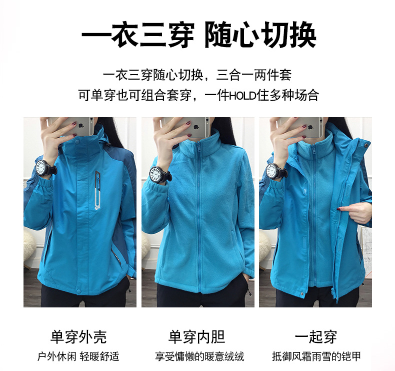 남녀공용 3-in-1 충전식 방수 방풍 작업복 자켓 투피스 세트, 로고 인쇄 가능, 두껍고 따뜻함스토어 가기