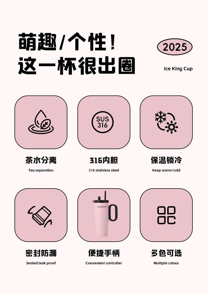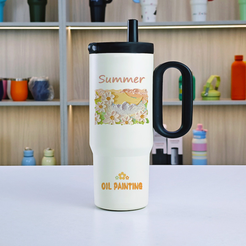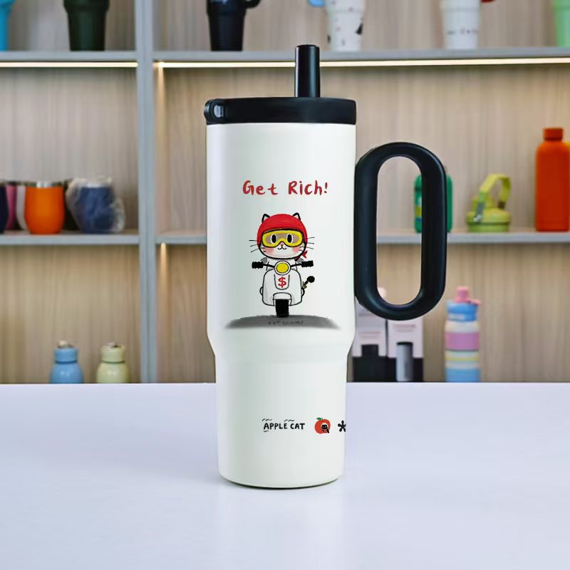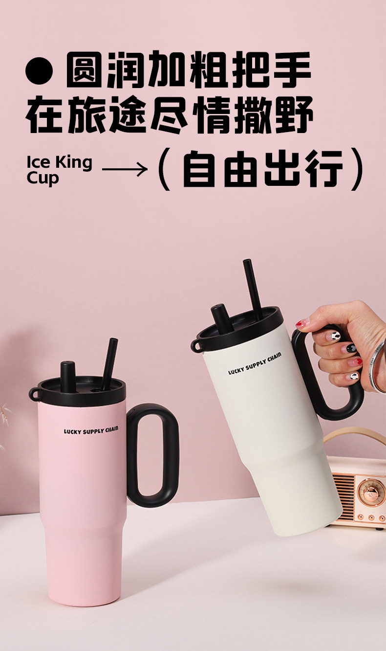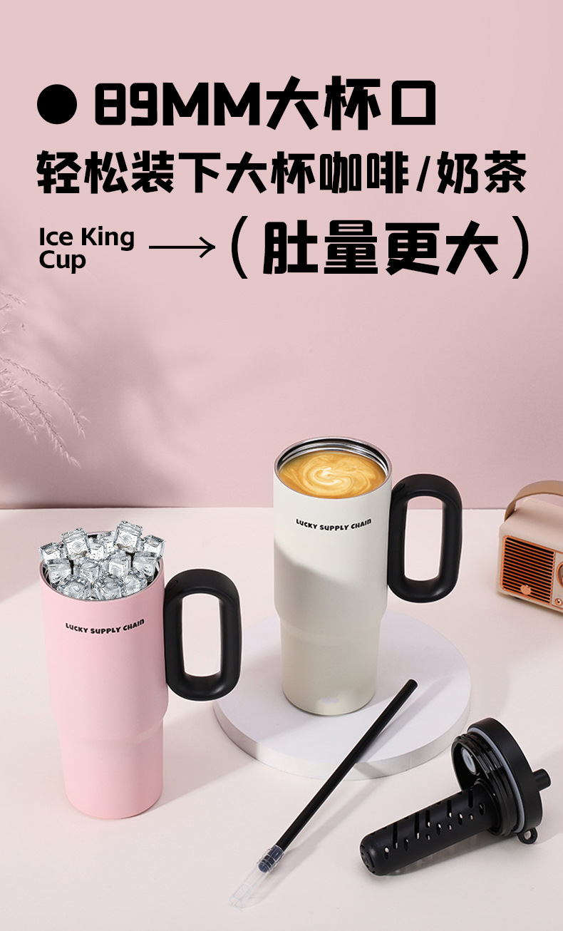 고급스러운 316 스테인레스 스틸 빅맥 보온병 컵, 대용량 손잡이 아이스 컵, 자동차 휴대용 냉수 컵스토어 가기