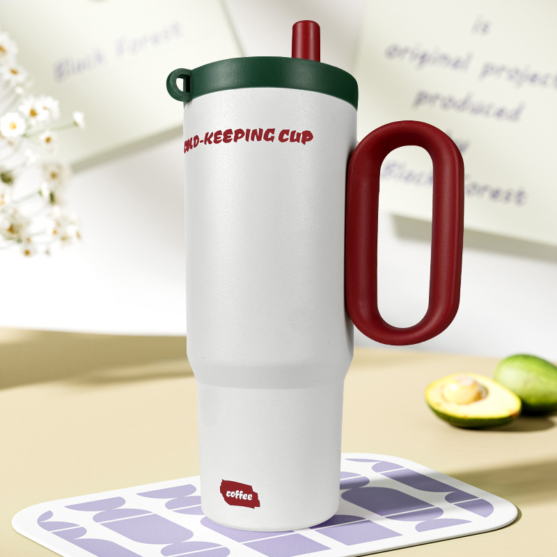 고급스러운 316 스테인레스 스틸 빅맥 보온병 컵, 대용량 손잡이 아이스 컵, 자동차 휴대용 냉수 컵