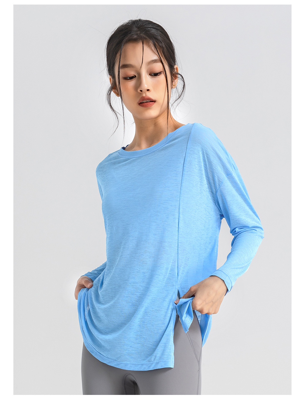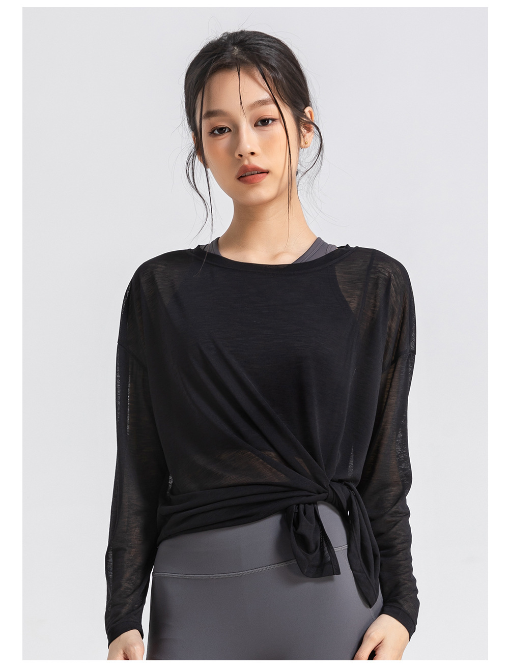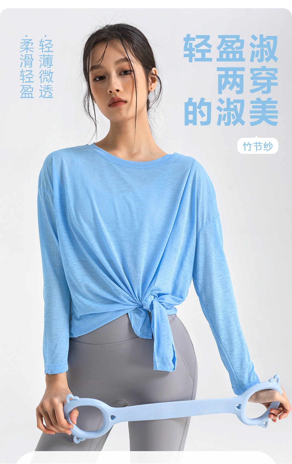 여성용 대나무 섬유 요가 커버업, 통기성 좋은 피트니스 운동복, 엉덩이를 덮는 요가복, 긴팔 상의, 여성용, 외부에서 착용 가능하고 편안합니다.