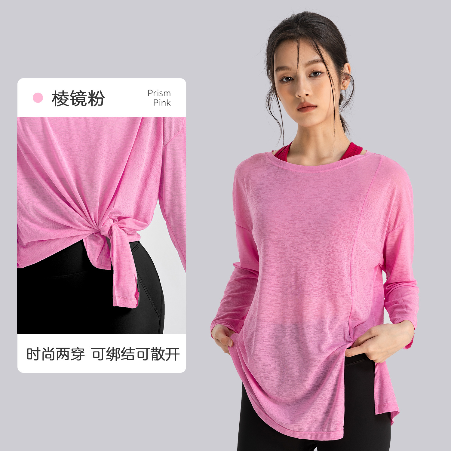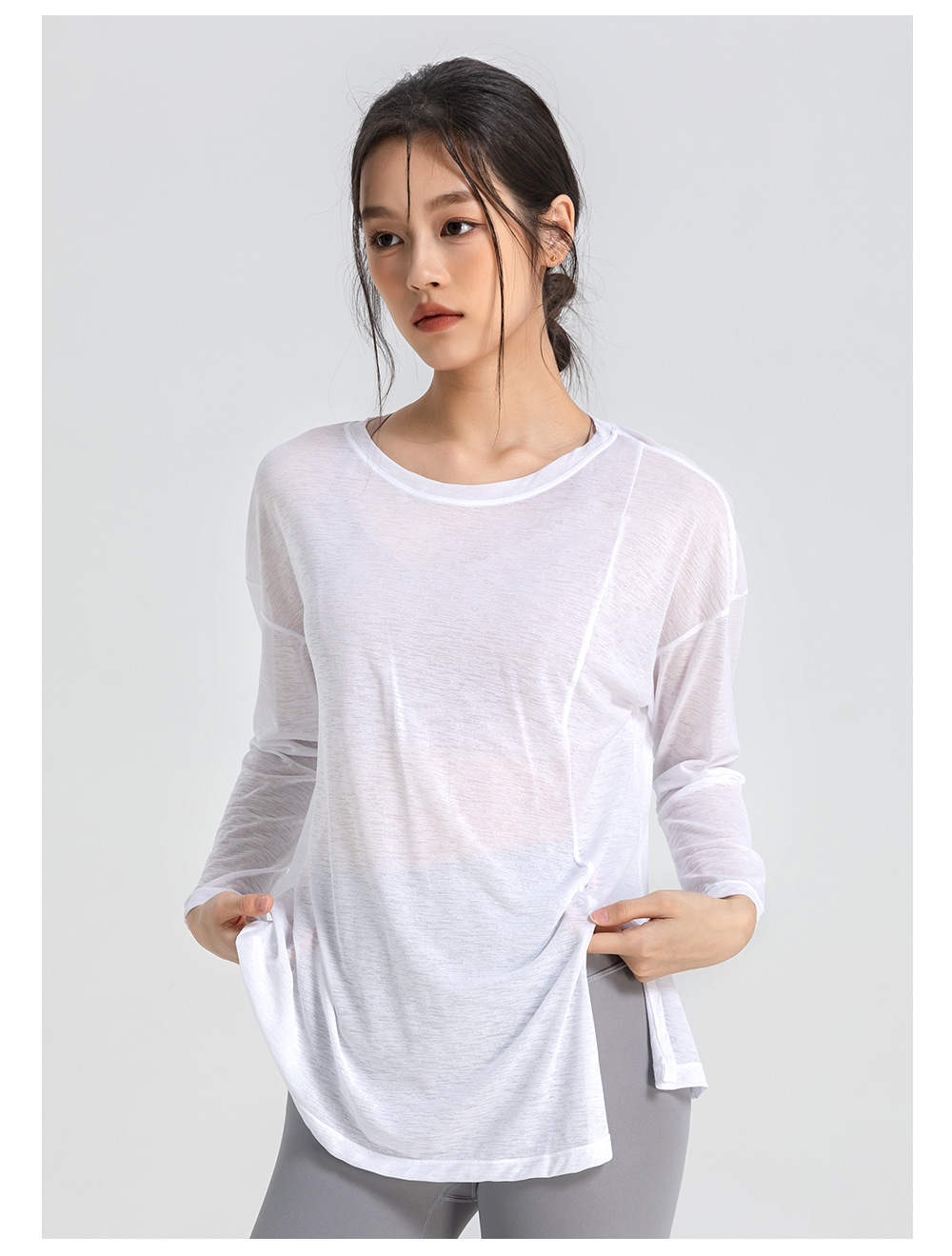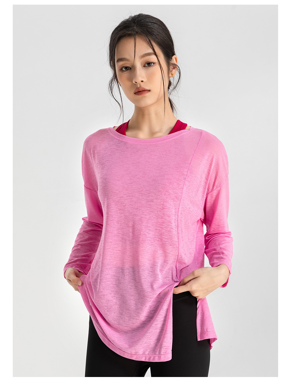 여성용 대나무 섬유 요가 커버업, 통기성 좋은 피트니스 운동복, 엉덩이를 덮는 요가복, 긴팔 상의, 여성용, 외부에서 착용 가능하고 편안합니다.