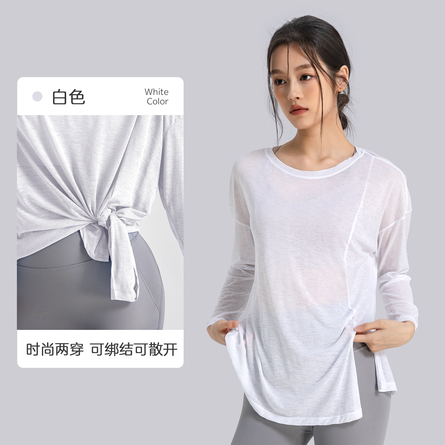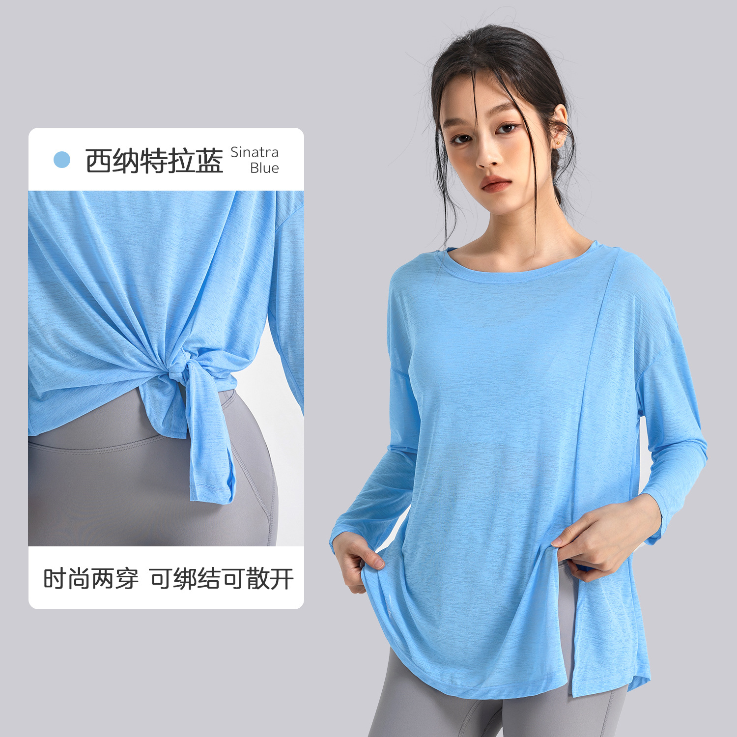 여성용 대나무 섬유 요가 커버업, 통기성 좋은 피트니스 운동복, 엉덩이를 덮는 요가복, 긴팔 상의, 여성용, 외부에서 착용 가능하고 편안합니다.스토어 가기