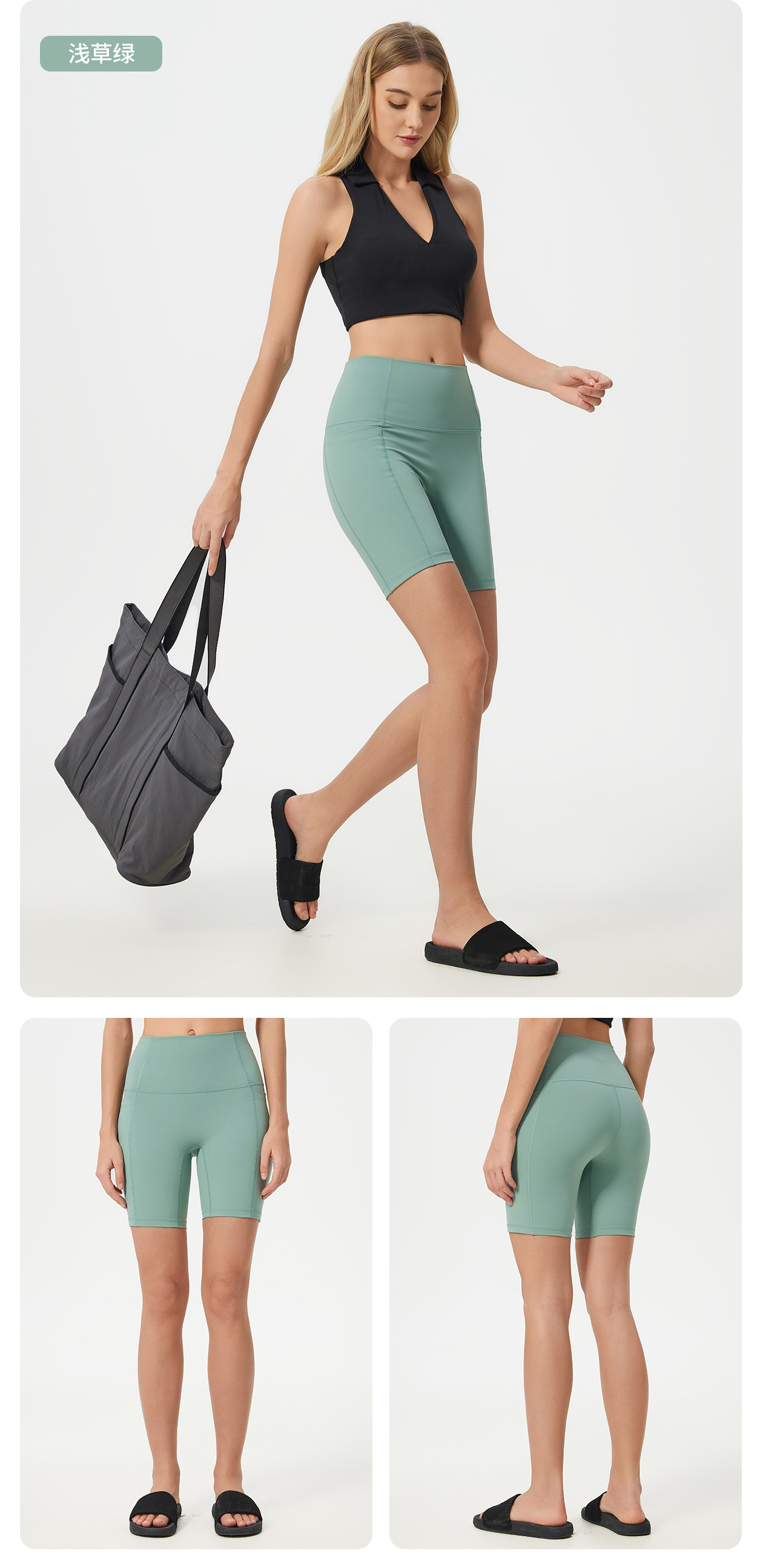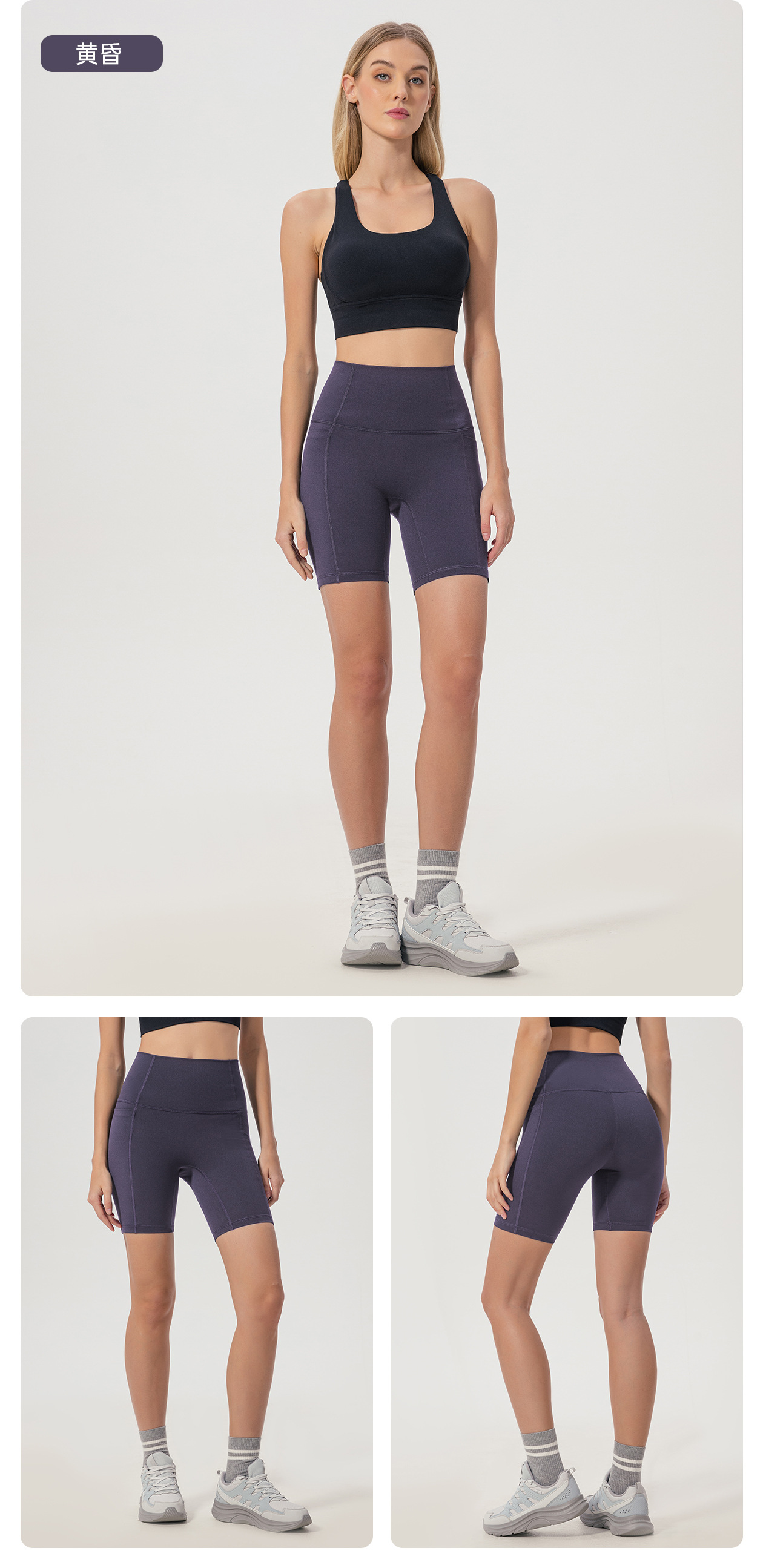벌거 벗은 당황 라인 바지 높은 허리 복숭아 엉덩이 포켓 요가 바지 여성용 스포츠 피트니스 반바지 여름 D25035