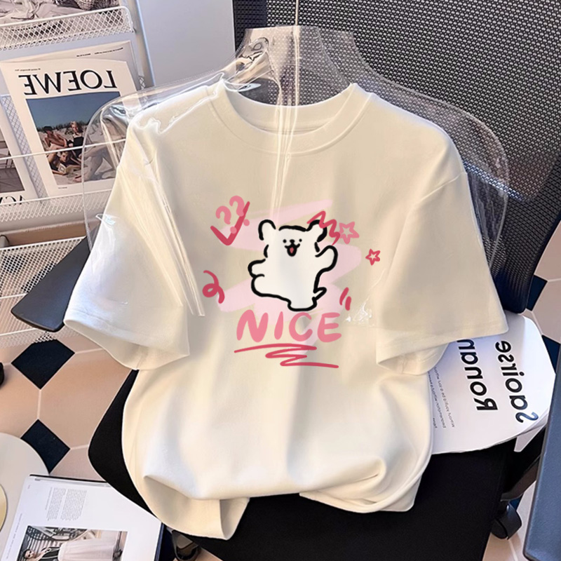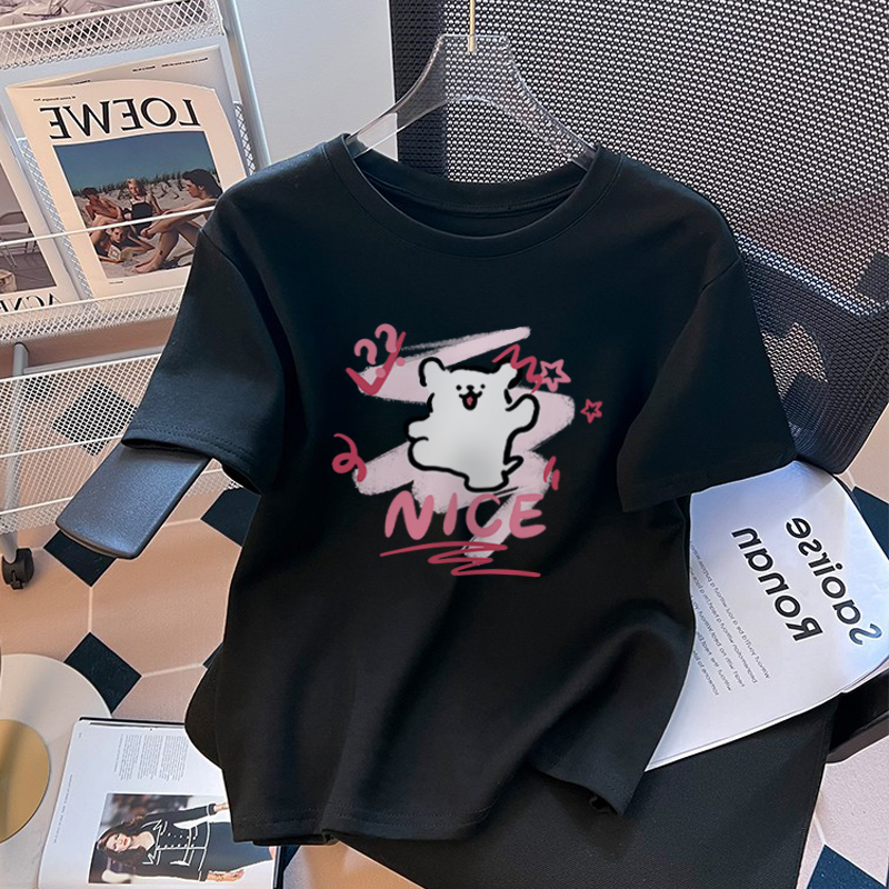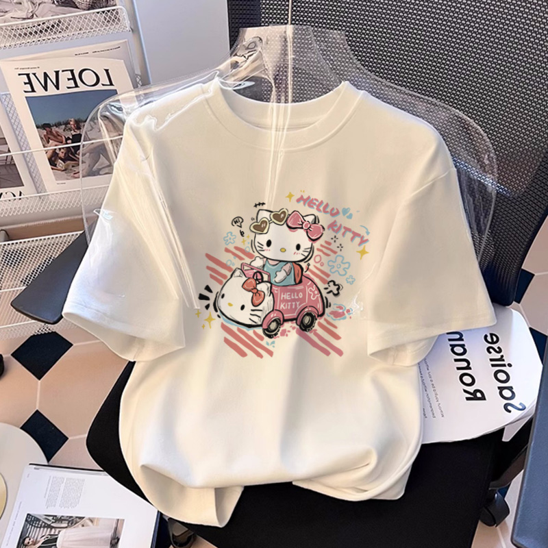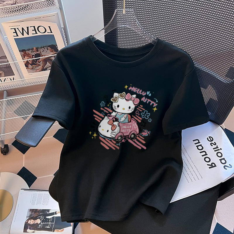 KT 고양이 반팔 티셔츠 여성용 퓨어 코튼 스킨 친화적 인 여름 퓨어 코튼 여름 옷 반소매 2025 신식 옷스토어 가기