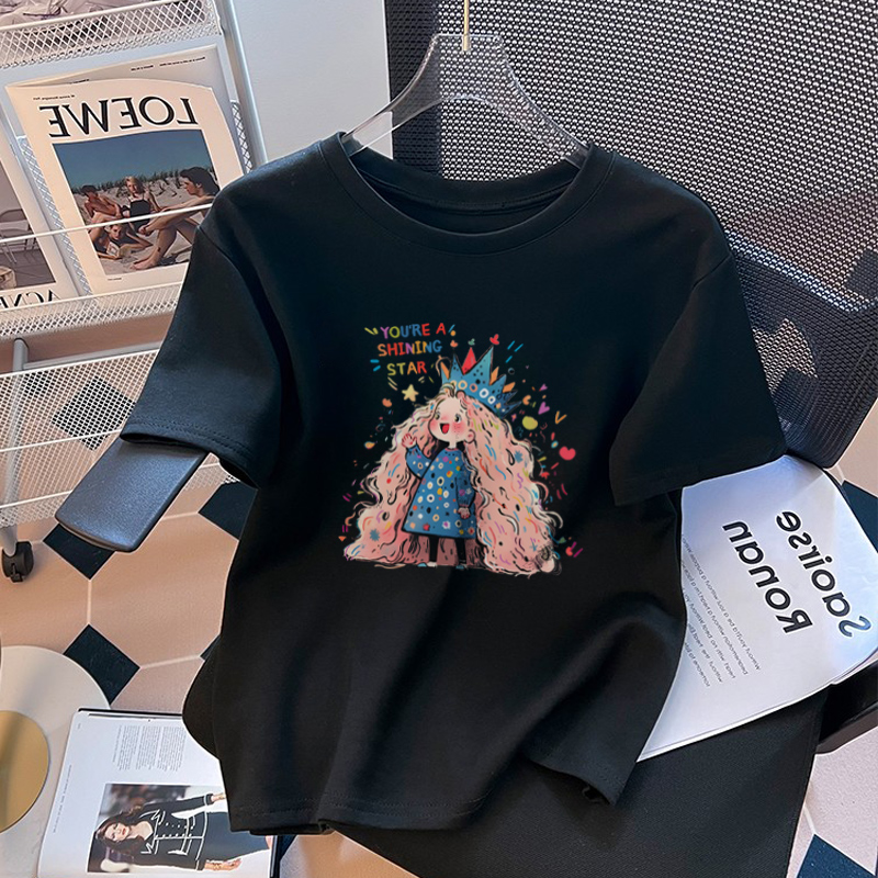 KT 고양이 반팔 티셔츠 여성용 퓨어 코튼 스킨 친화적 인 여름 퓨어 코튼 여름 옷 반소매 2025 신식 옷