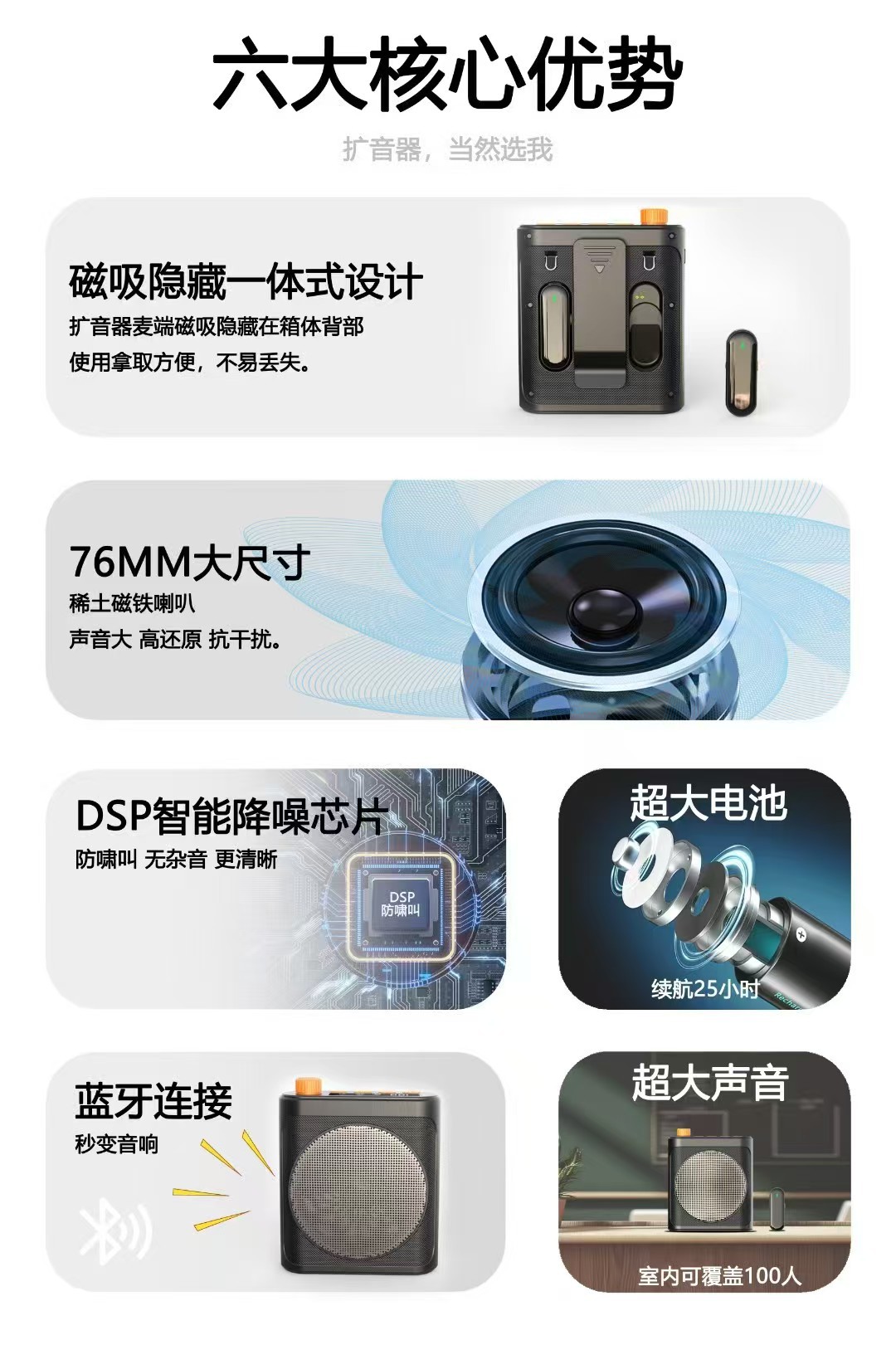 새로운 메가폰 꿀벌 무선 칼라 클립 마이크 오디오 통합 노래방 교사 투어 가이드 쇼핑몰 프로모션스토어 가기