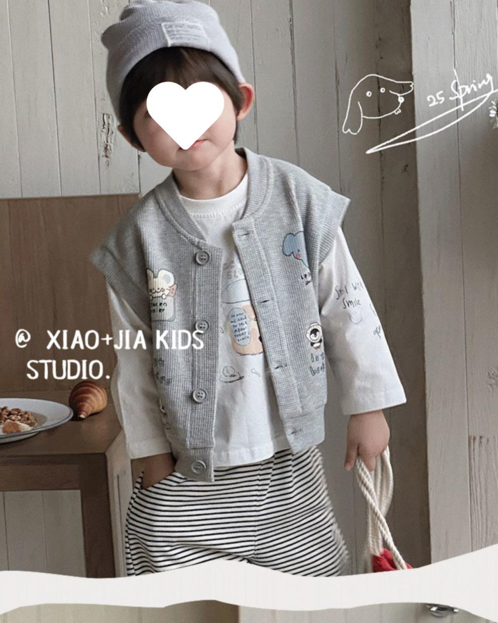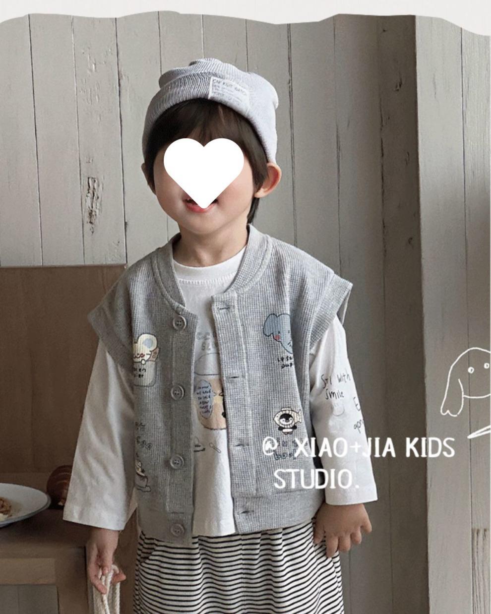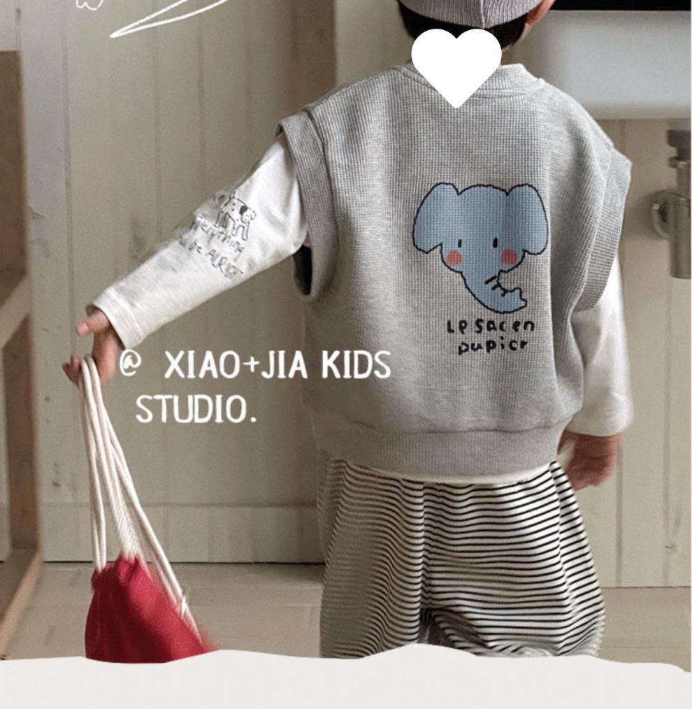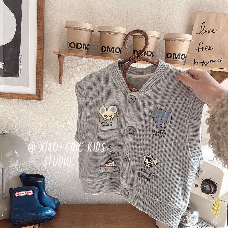유니버설 콜로케이션 ~ 어린이 봄 동물 프린트 와플 코튼 조끼와 소녀의 봄과 가을 실용적인 탑스토어 가기