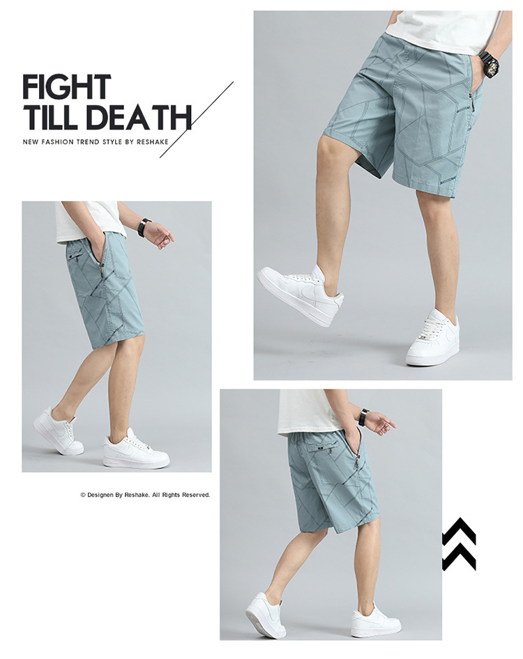 여름 툴링 지퍼 포켓 반바지 남성용 얇은 느슨한 원단 5 점 유행 캐주얼 바지