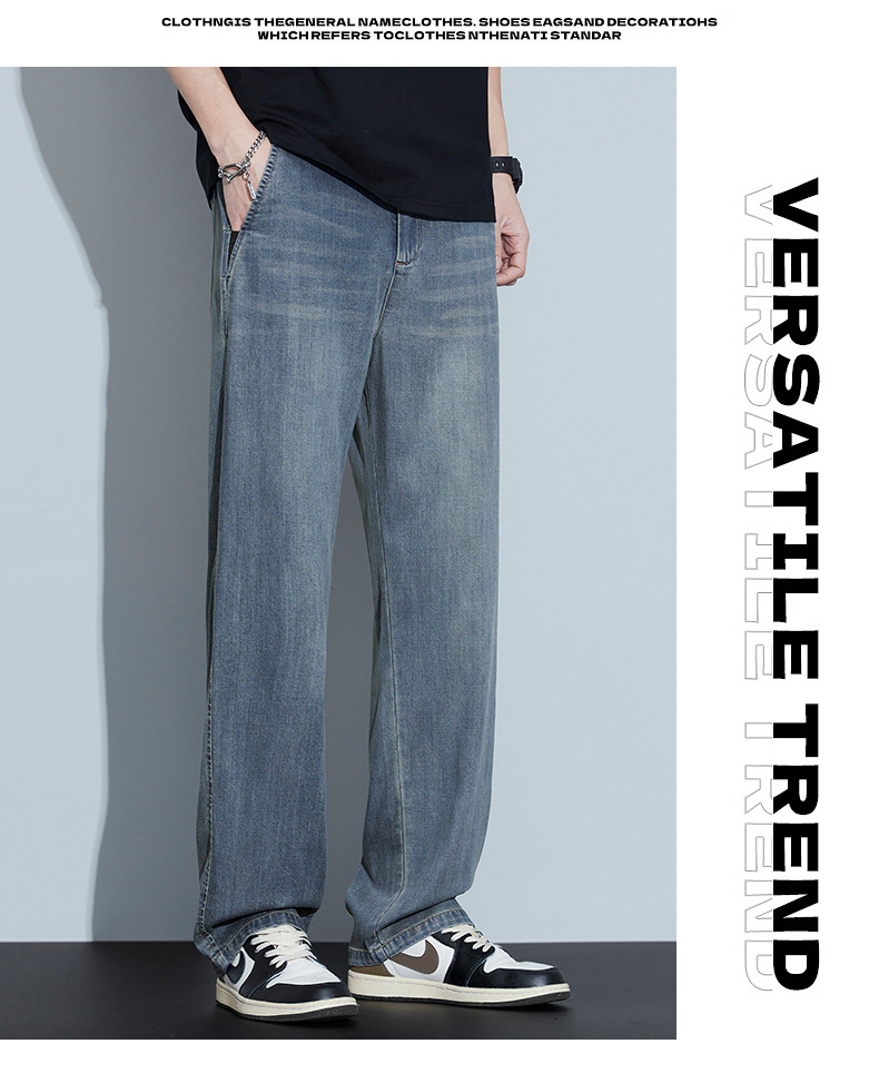 텐셀 청바지 남성 2026 봄 신상 트렌디 브랜드 레트로 루즈핏 캐주얼 아메리칸 스타일 드레이프 와이드 팬츠