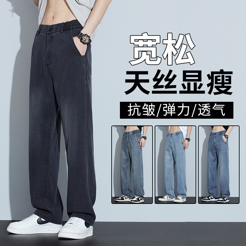 텐셀 청바지 남성 2026 봄 신상 트렌디 브랜드 레트로 루즈핏 캐주얼 아메리칸 스타일 드레이프 와이드 팬츠스토어 가기