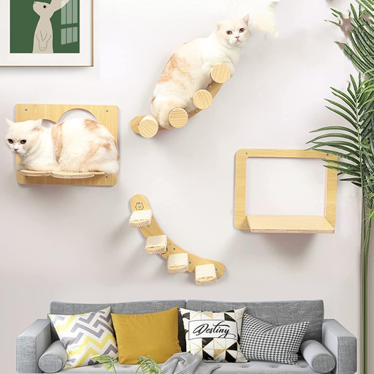 단단한 나무 고양이 등반 랙 칼럼 벽 고양이 벽 점프 테이블 고양이 둥지 고양이 나무 DIY 벽 장착 고양이 계단 장난감스토어 가기