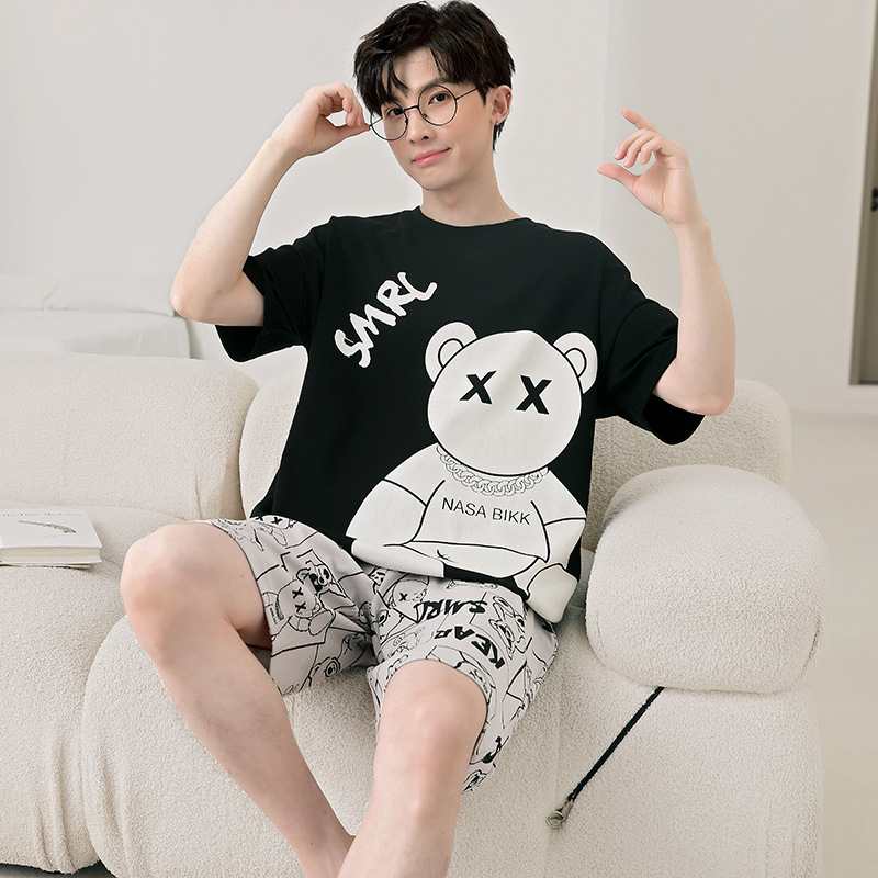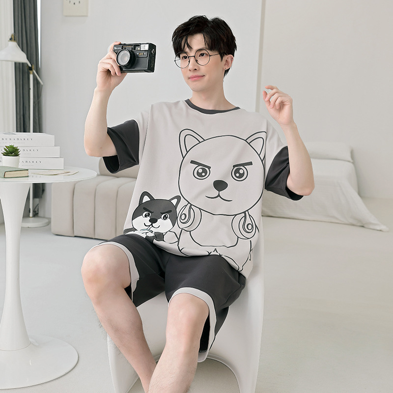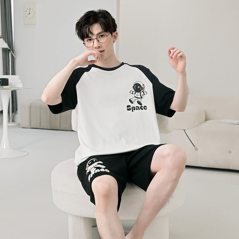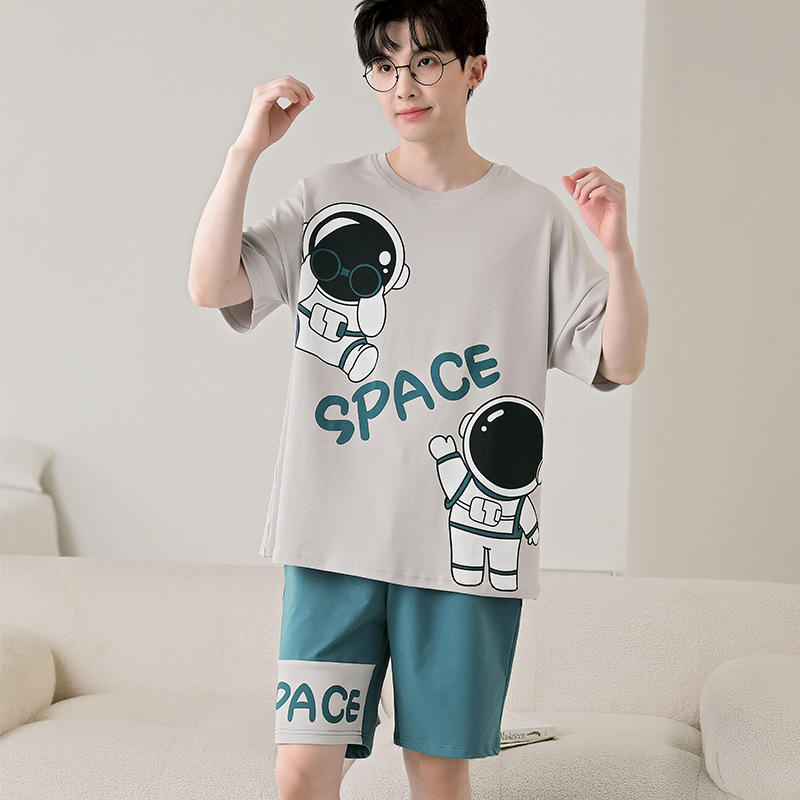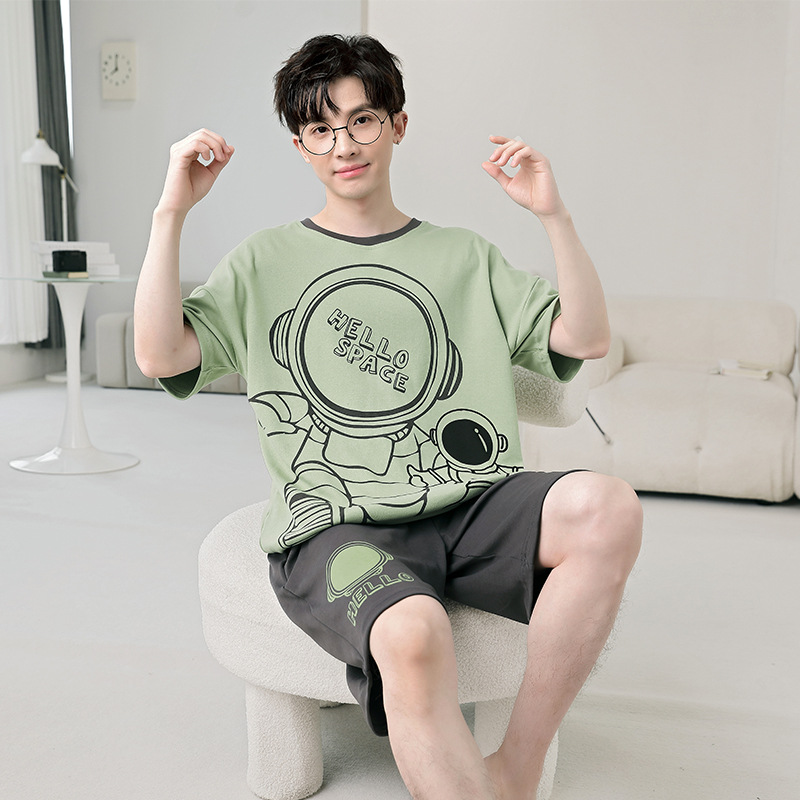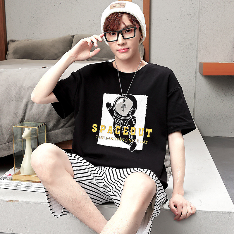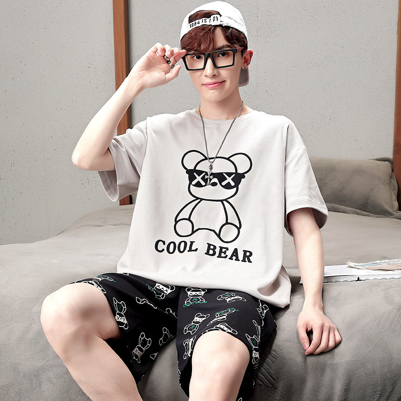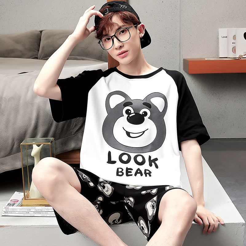 큰 어린이 잠옷 소년 여름 얇은 면 반팔 십대 학생 남자 홈 옷 면화 플러스 사이즈 세트스토어 가기