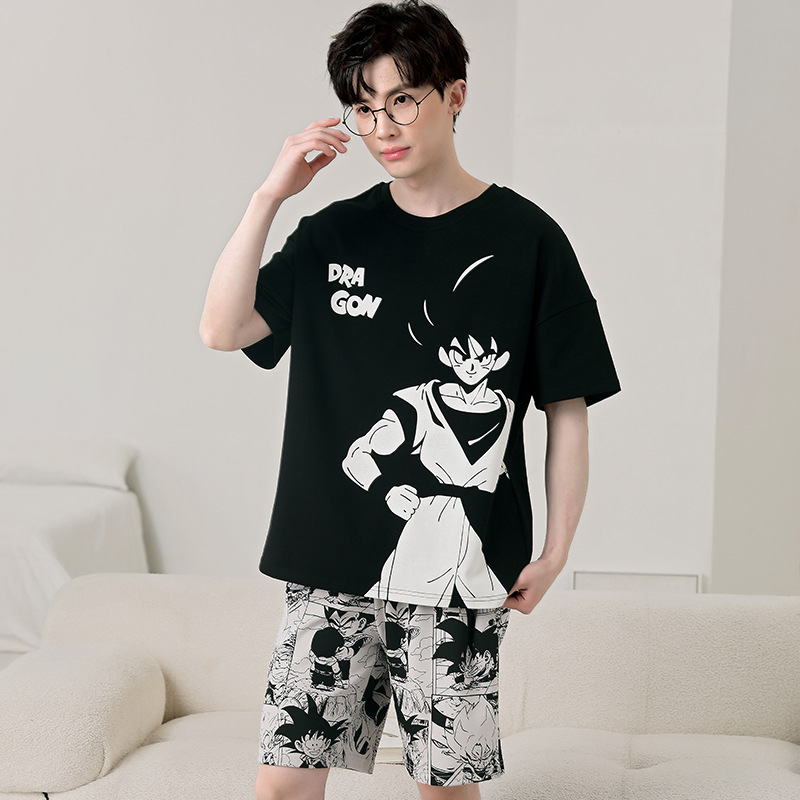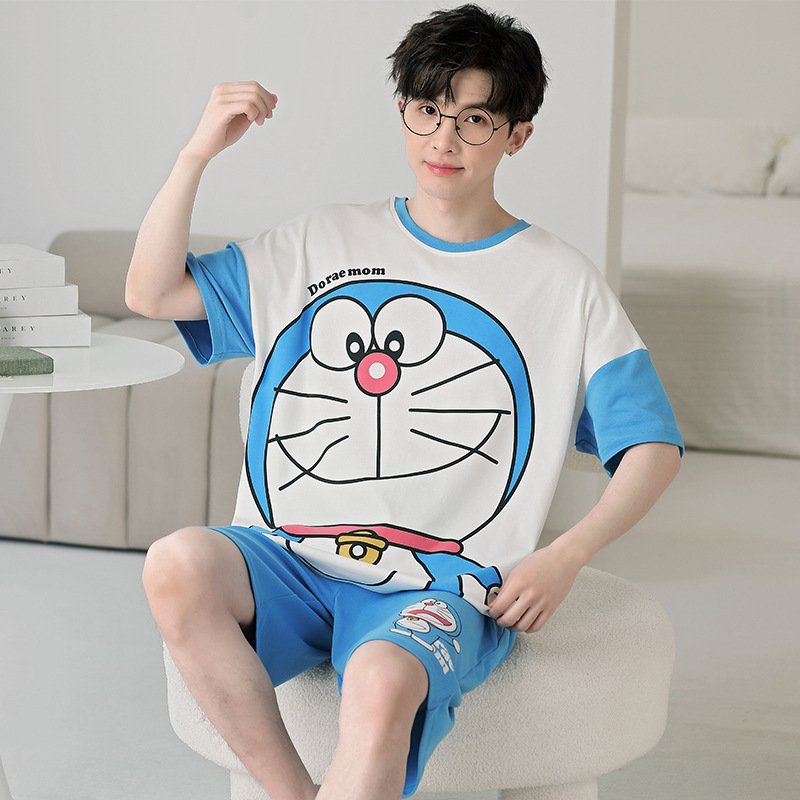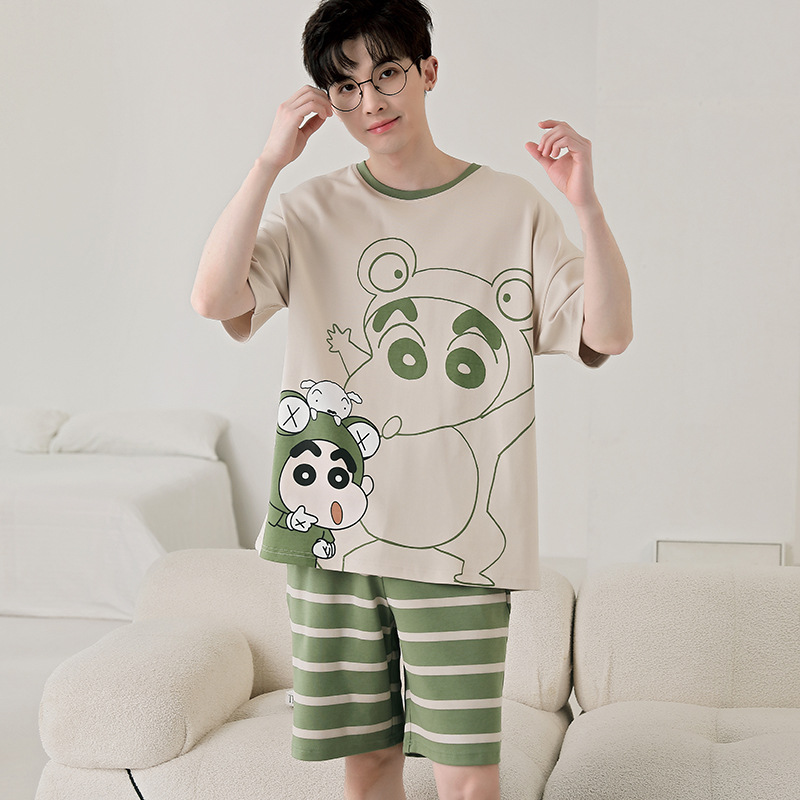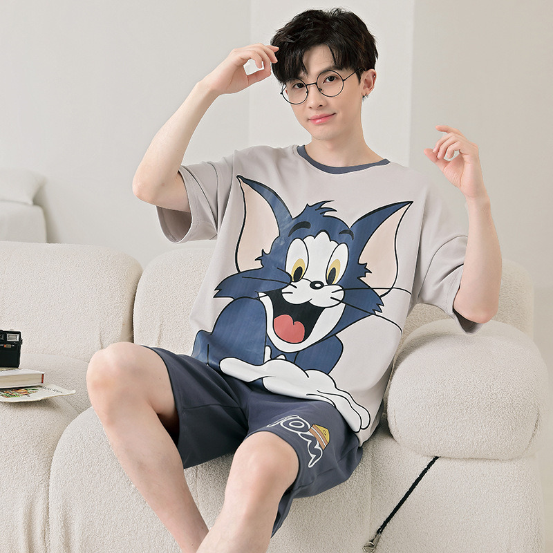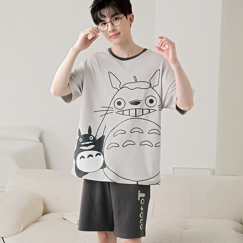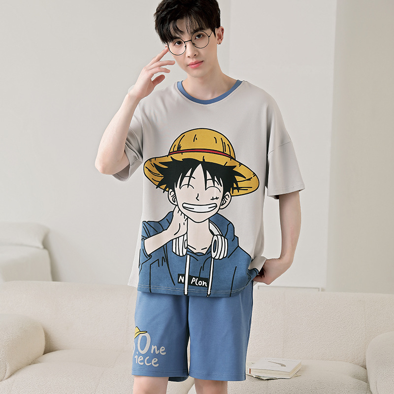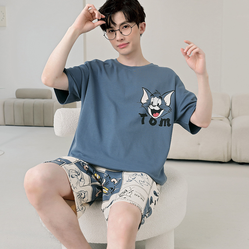 큰 어린이 잠옷 소년 여름 얇은 면 반팔 십대 학생 남자 홈 옷 면화 플러스 사이즈 세트스토어 가기
