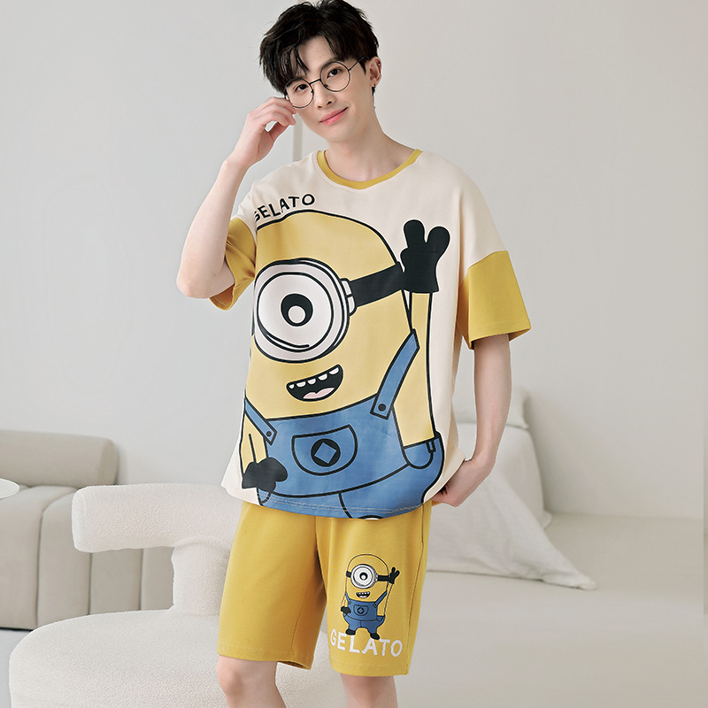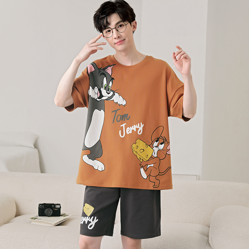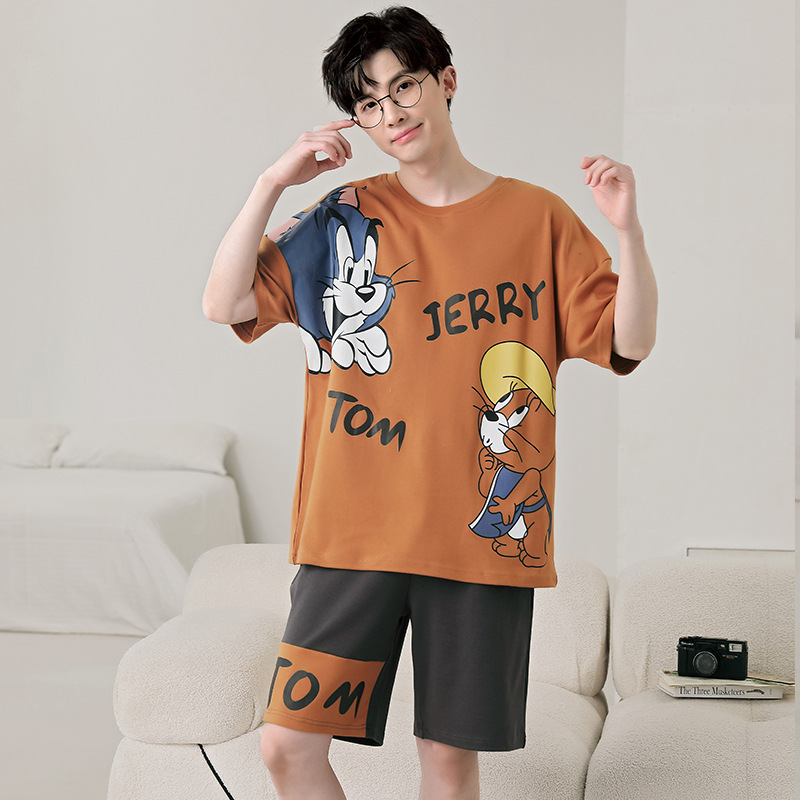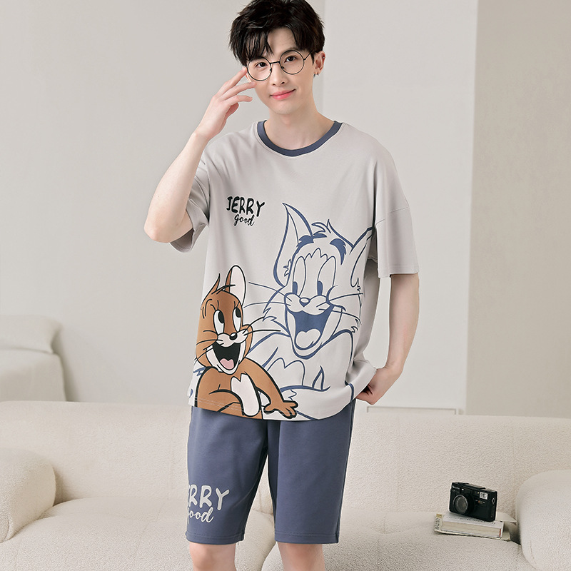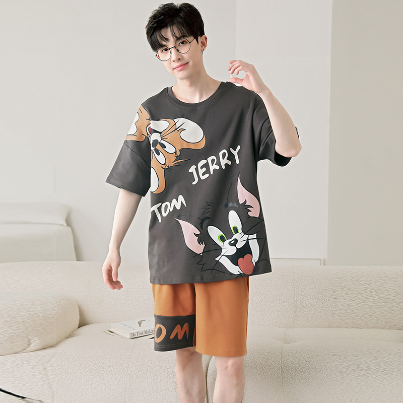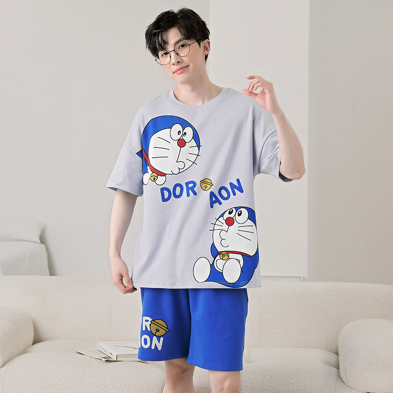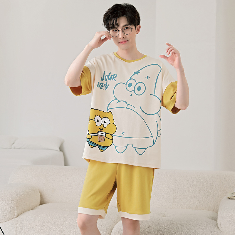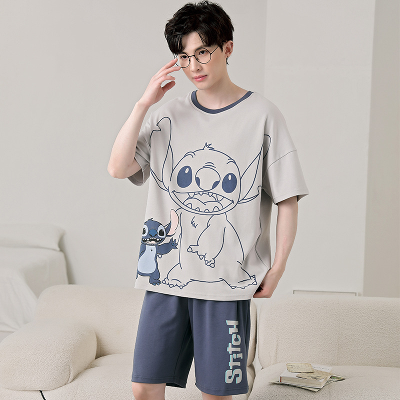 큰 어린이 잠옷 소년 여름 얇은 면 반팔 십대 학생 남자 홈 옷 면화 플러스 사이즈 세트스토어 가기