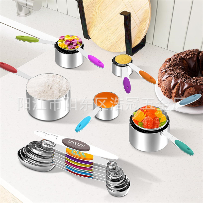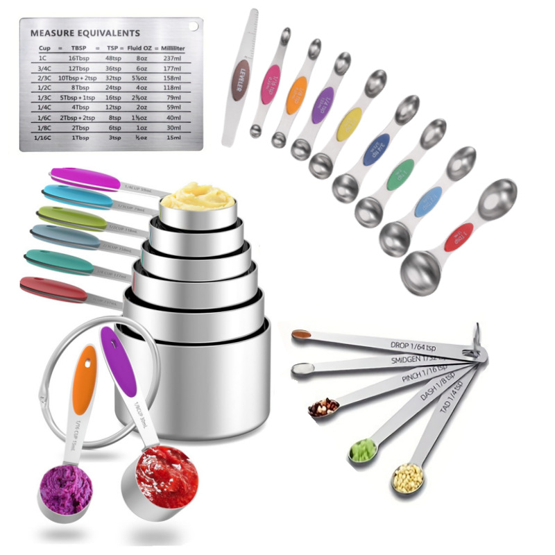 재고 국경 전용 23 피스 주방 스테인레스 스틸 미니 측정 숟가락 조미료 측정 숟가락 스테인레스 스틸 측정 컵 세트