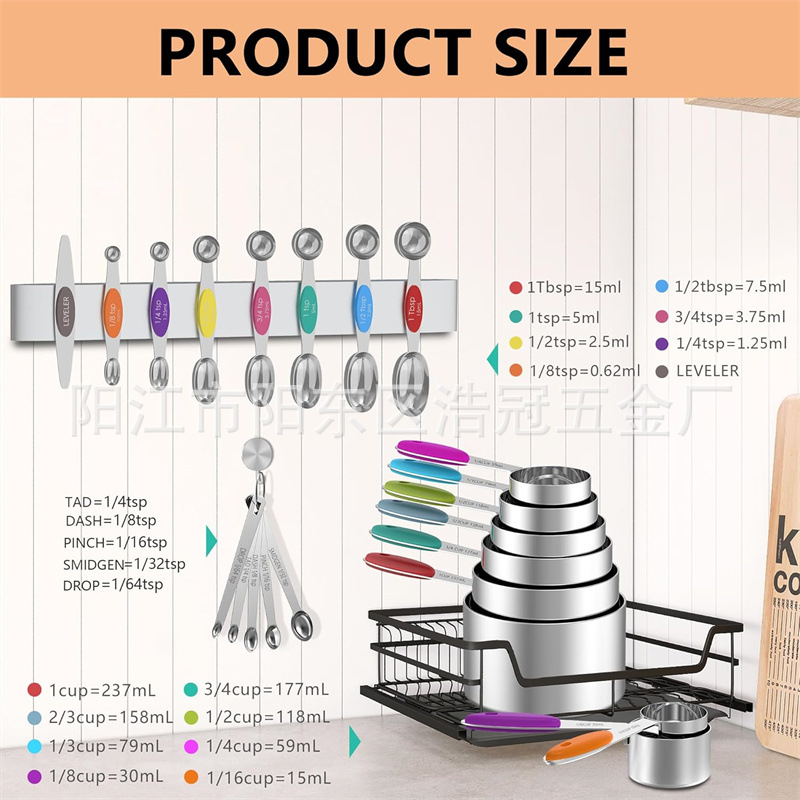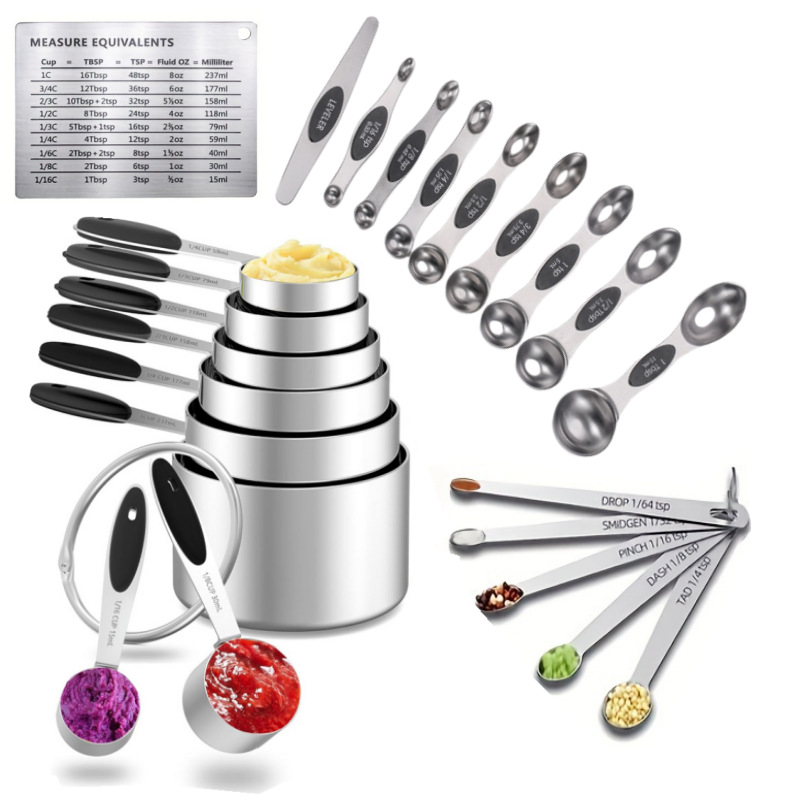 재고 국경 전용 23 피스 주방 스테인레스 스틸 미니 측정 숟가락 조미료 측정 숟가락 스테인레스 스틸 측정 컵 세트스토어 가기