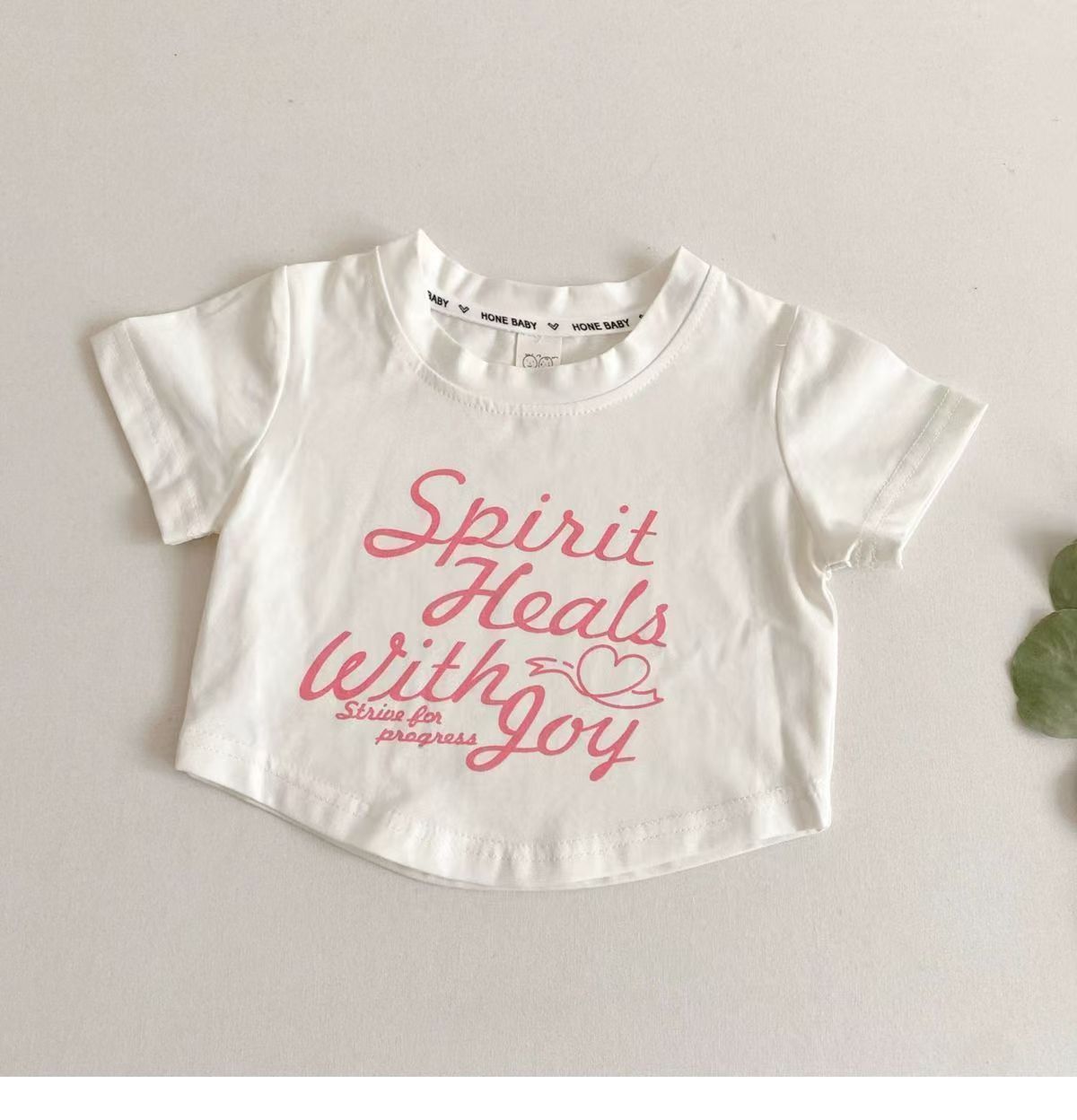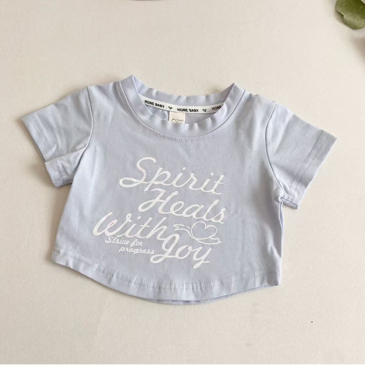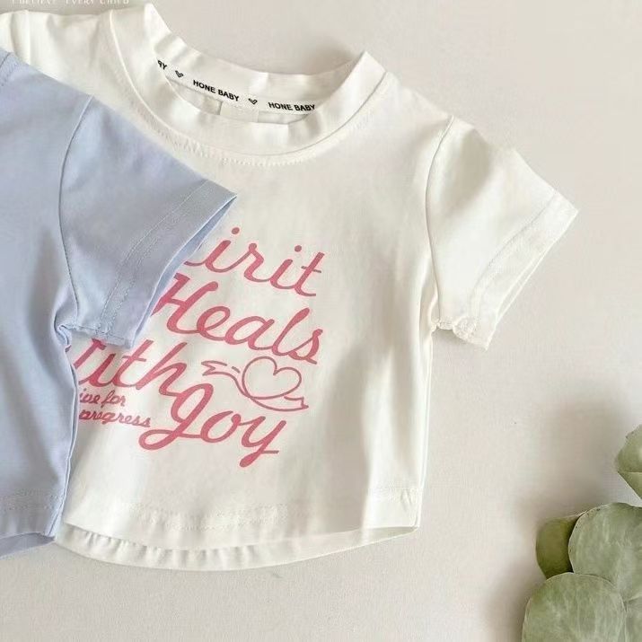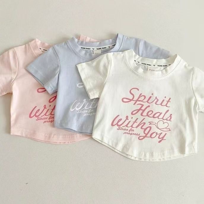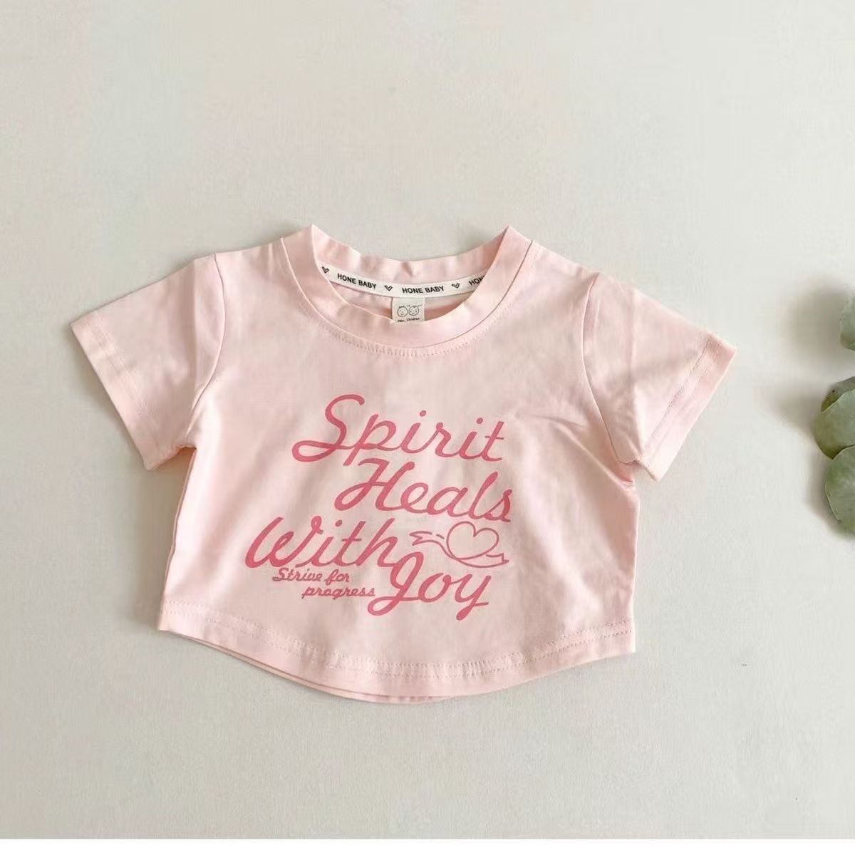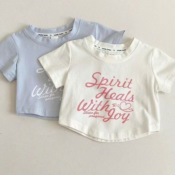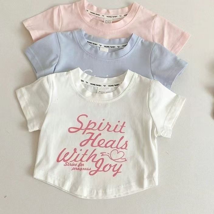 2025 년 여름 새 여아 반팔 티셔츠 하이 허리 배꼽 전시 어린이 서양식 반소매 탑 트렌디스토어 가기