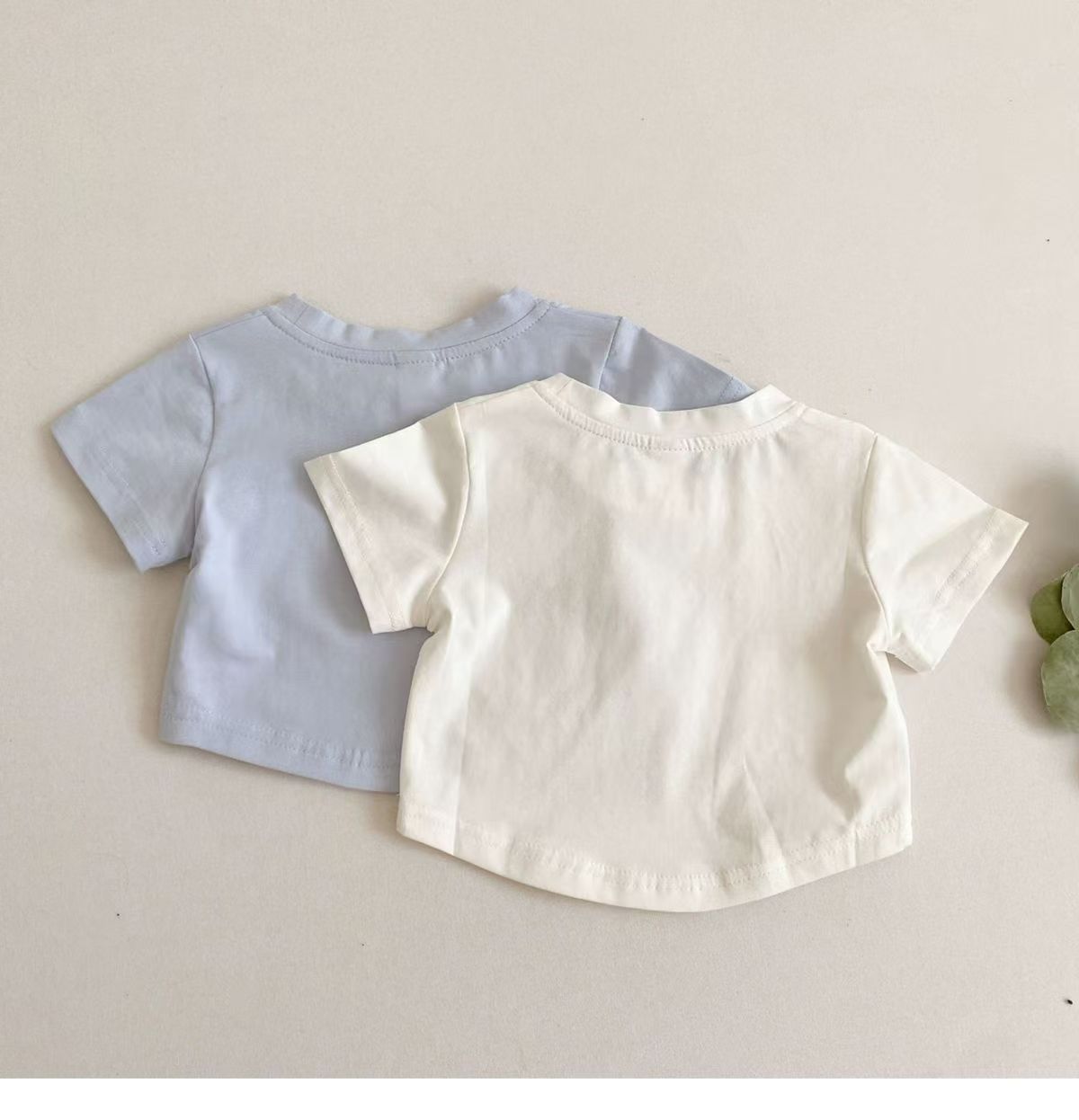 2025 년 여름 새 여아 반팔 티셔츠 하이 허리 배꼽 전시 어린이 서양식 반소매 탑 트렌디